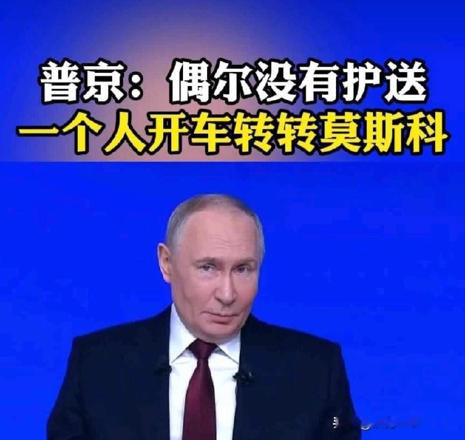 罕见! 普京说:我偶尔没有交警护送,一个人开车转转莫斯科。虽然这种情况并不是很多见,但是我一个人开着车在莫斯科转悠的时候,可以看到周围发生的一切,周围的风景,那是一件很有意义的很有趣的事情。 看完普京说的这段话,不知道大家有没有学过心理学的,我想他可能表达了一下这么几层意思。 一是莫斯科很安全,大家的经济生活发展一切如常。 二是体现了普京的亲民形象,说明他很关注民生,俗话说,实践是检验真理的唯一标准,他只有亲自体验了,才知道当前莫斯科社会的情况到底是如何的。 三是艺高人胆大,是不是体现了他面对复杂问题胸有成竹的样子?虽然他愿意偶尔一个人驾车出去转转,但是,我想很多俄人民是不愿意他这么去干的,因为他是俄罗斯总统关系到俄罗斯的未来,他自身的安全是第1位的。如此罕见的举动,必将会赢得更多俄罗斯人民的支持。[捂脸]