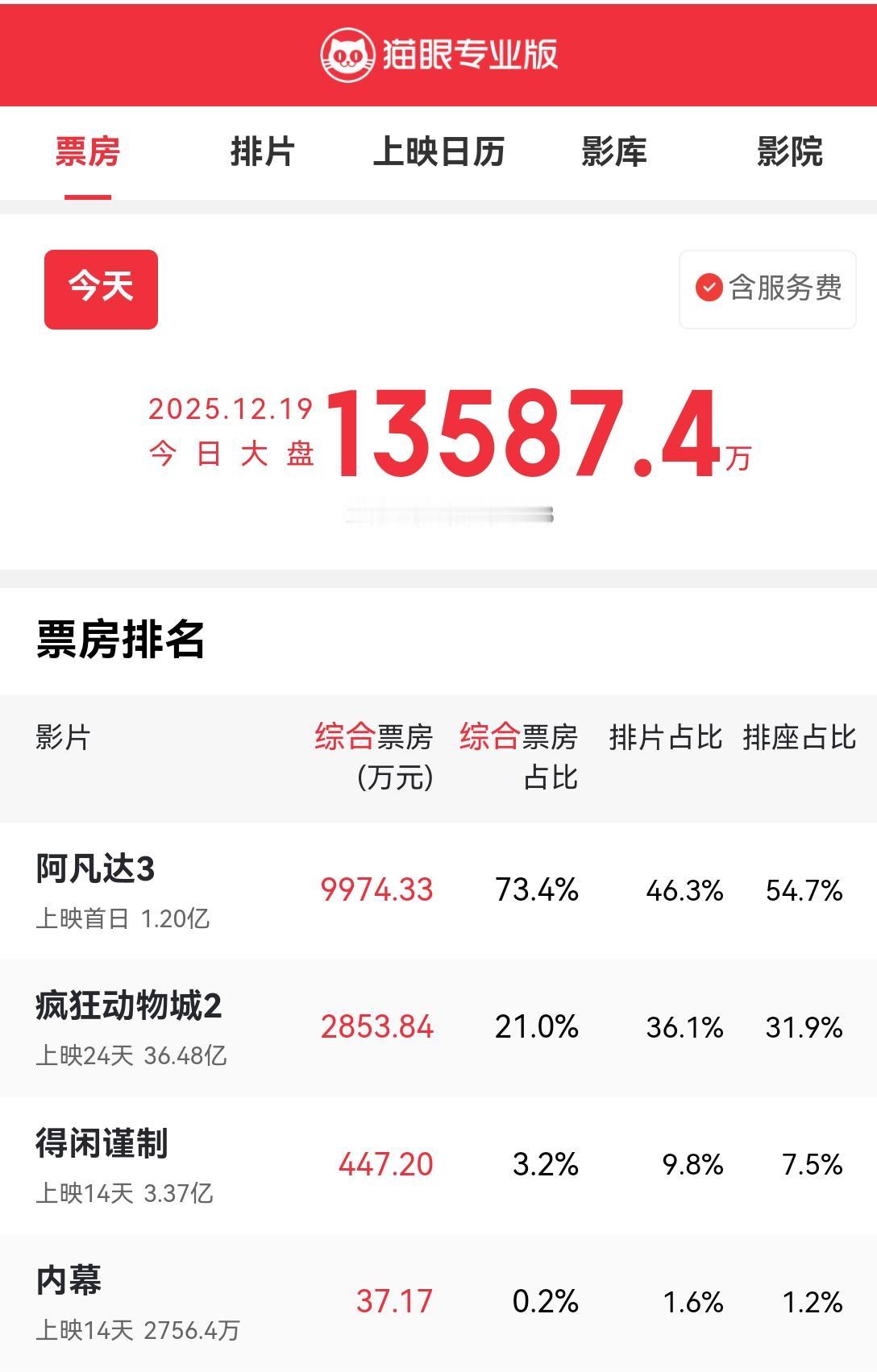 [吃瓜群众]《阿凡达3》,把万达IMAX券的行情都拉高到40(原价)以上,结果周五的首日票房(不含“点映预售”)竟然连一亿都破不了,有点“半扑”的预感啊[思考]看来,《动物城2》可以“索隐”(其实非常直白)是个“特例”——“正常”的好莱坞作品,经过“多元化”之后,无论画风还是剧情,那都是…“一言难尽”[我想静静]不过有一说一,特效还是拿得出手的[尬笑]