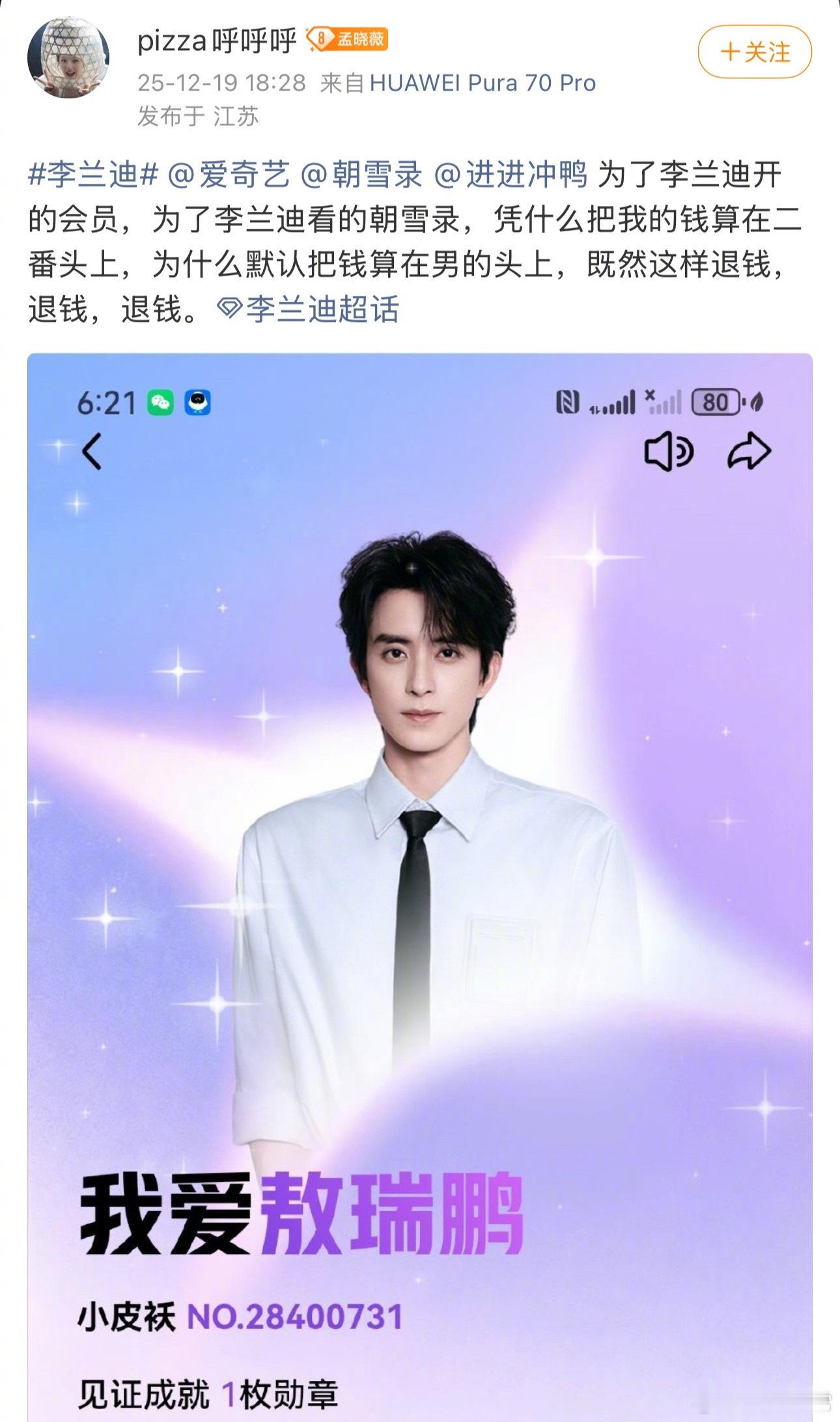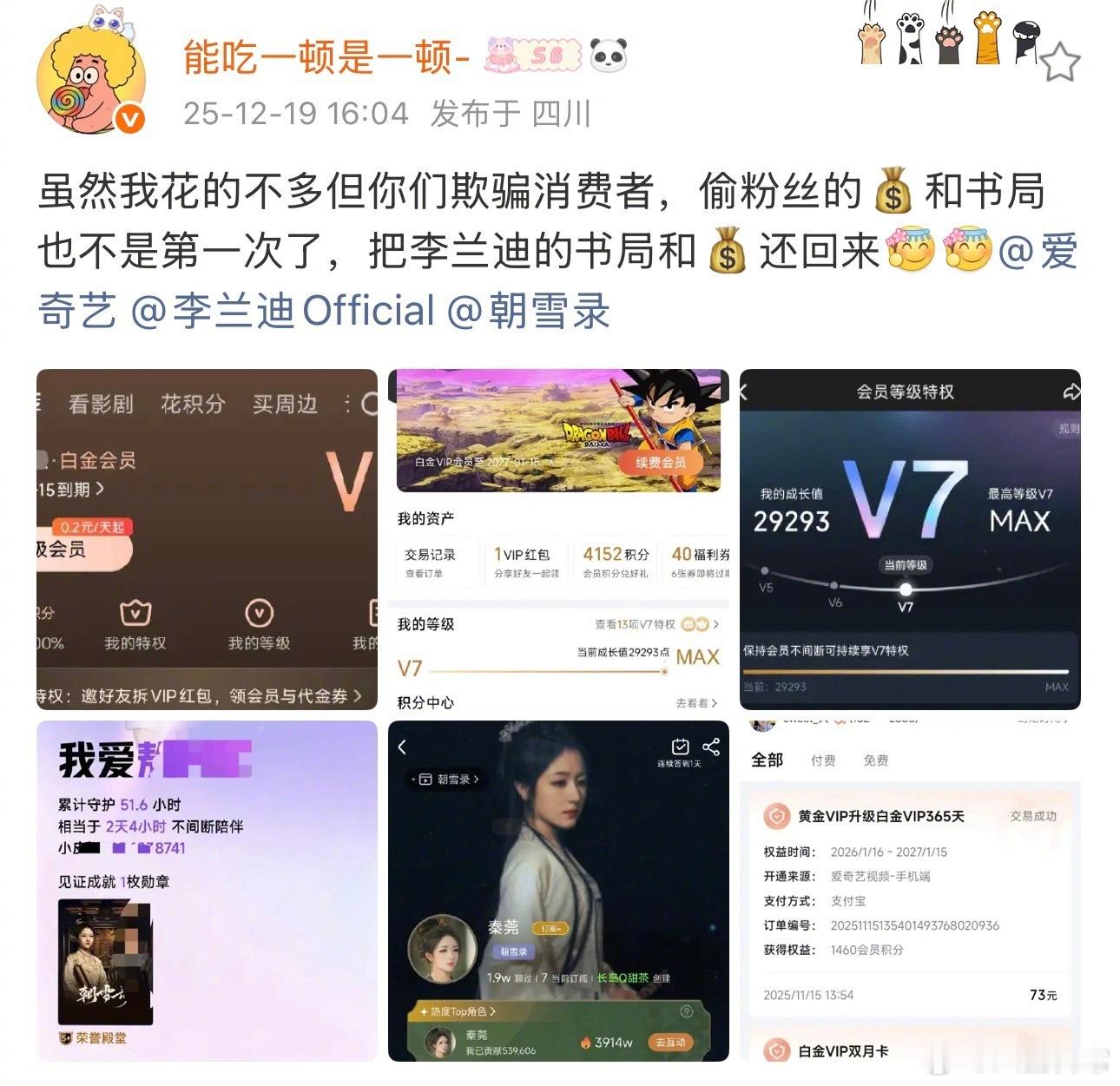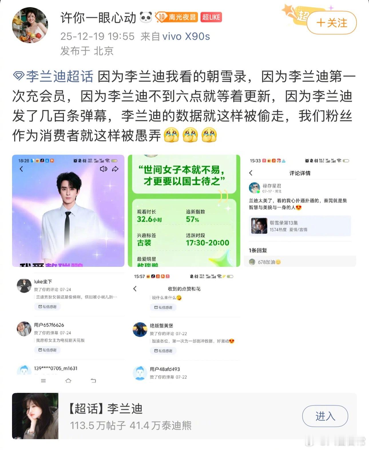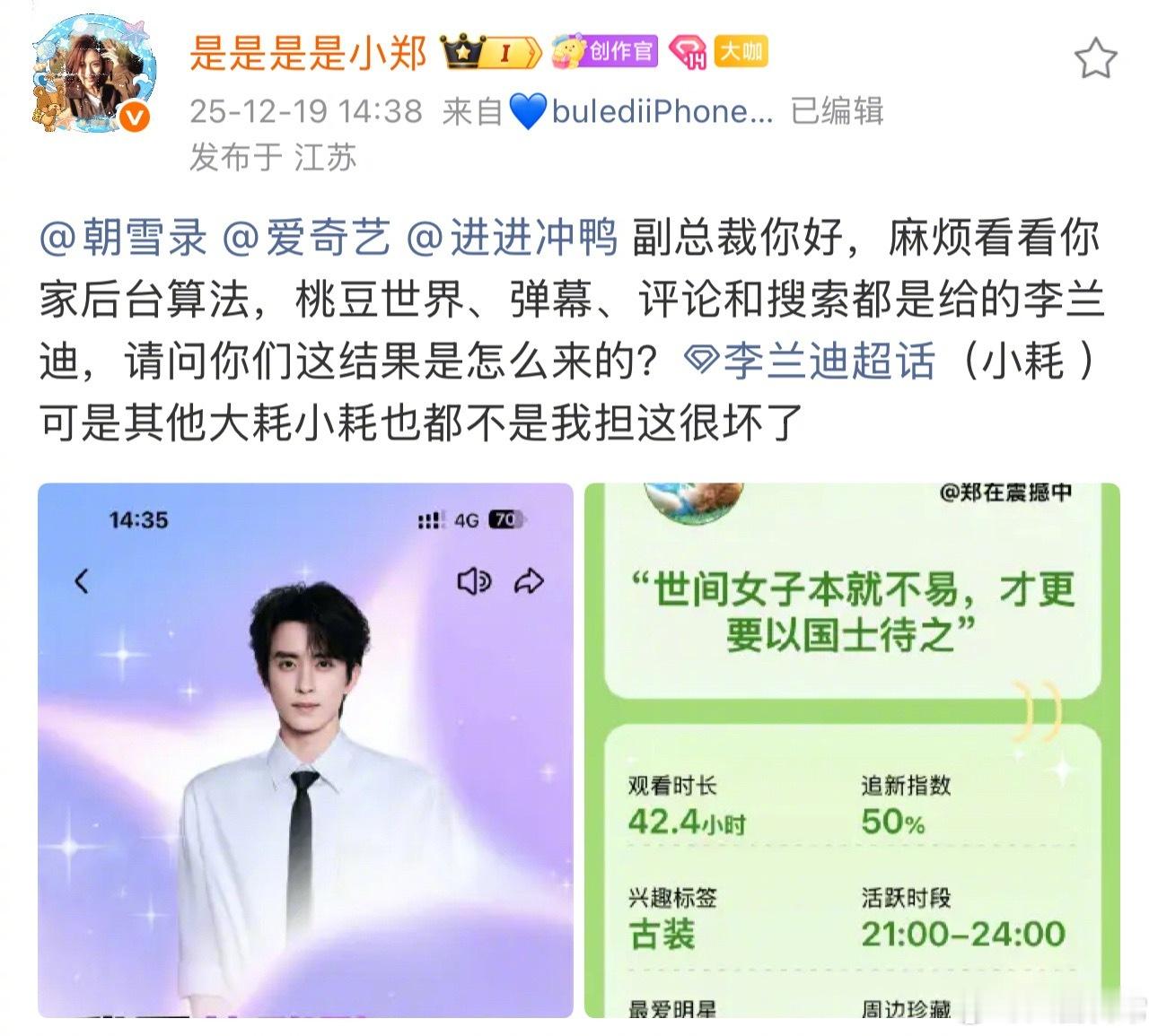李兰迪粉丝向爱奇艺维权,说爱奇艺把李兰迪的数据都算在敖瑞鹏头上