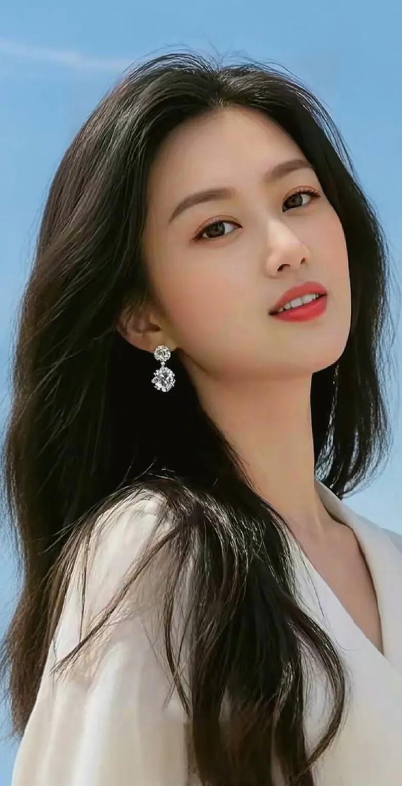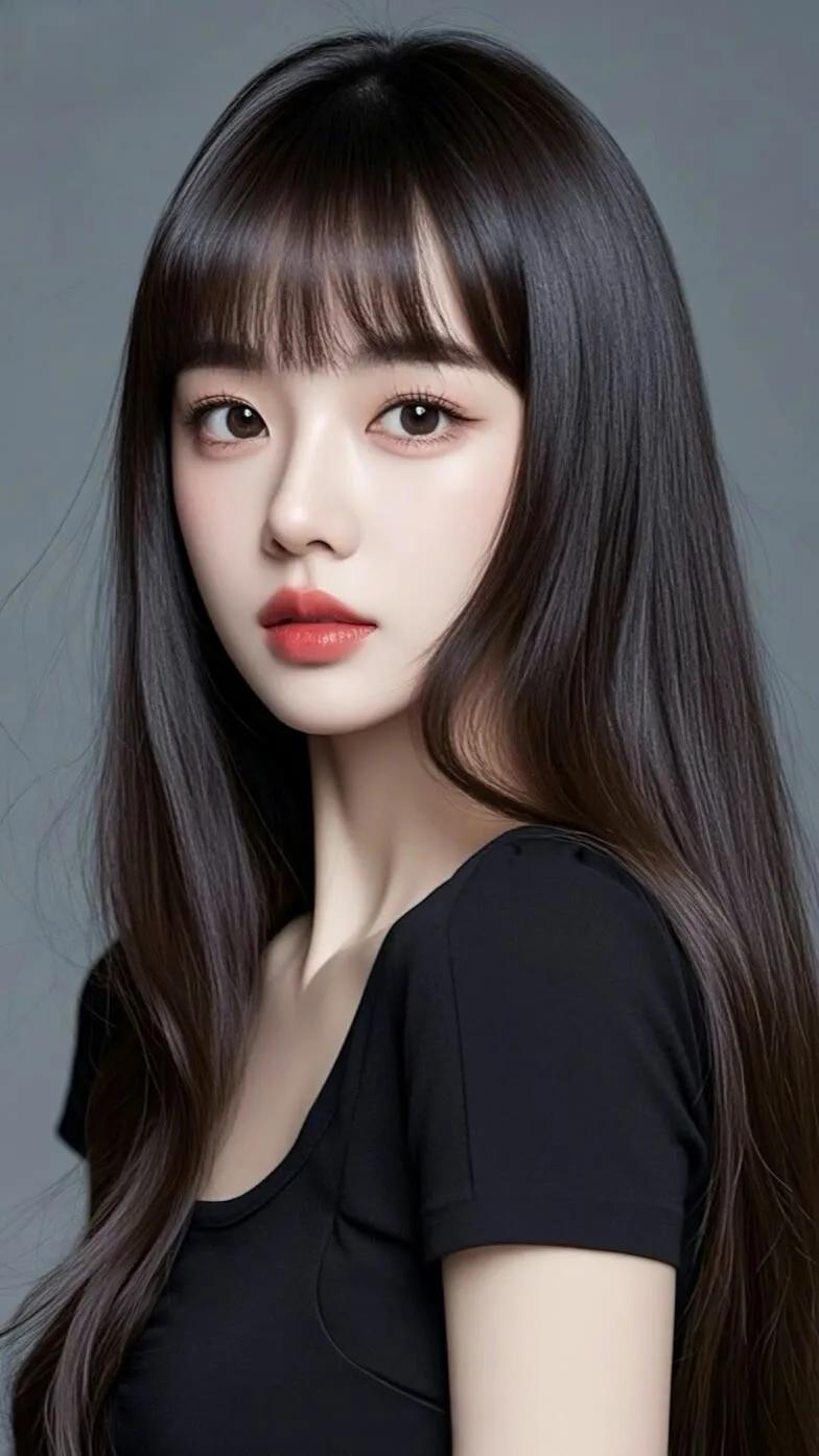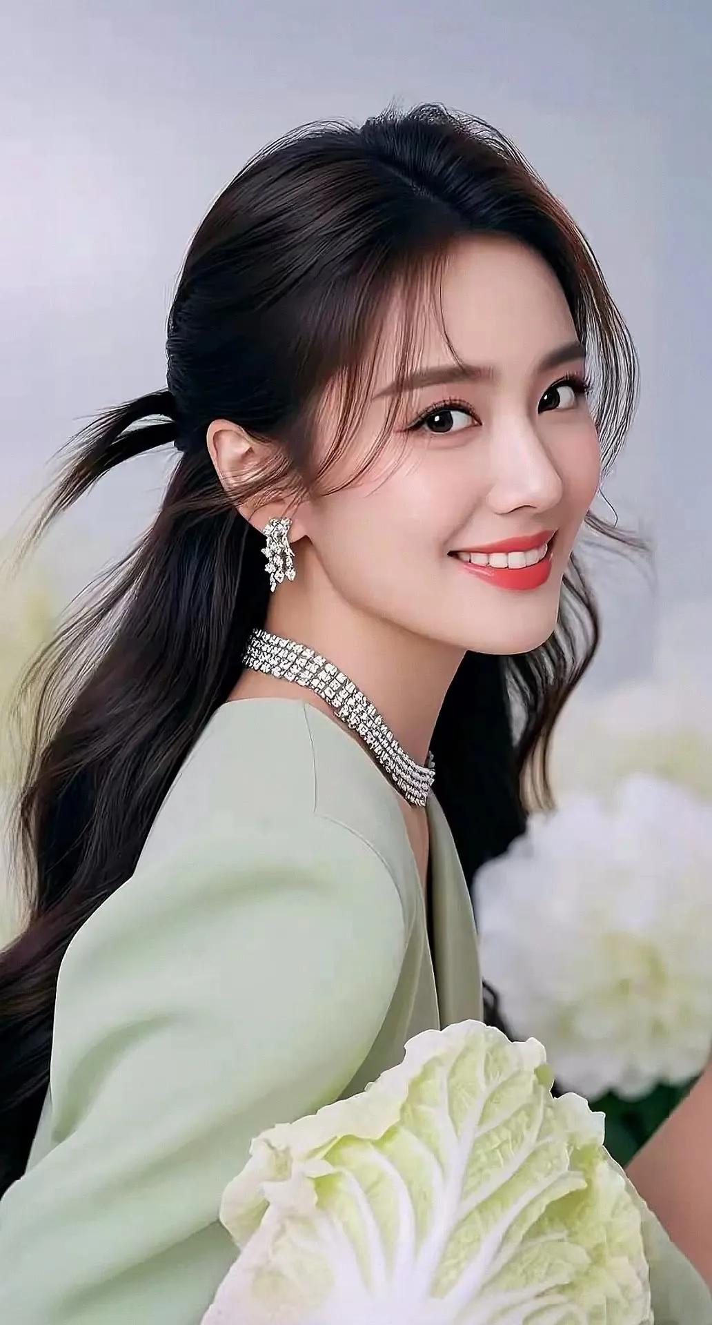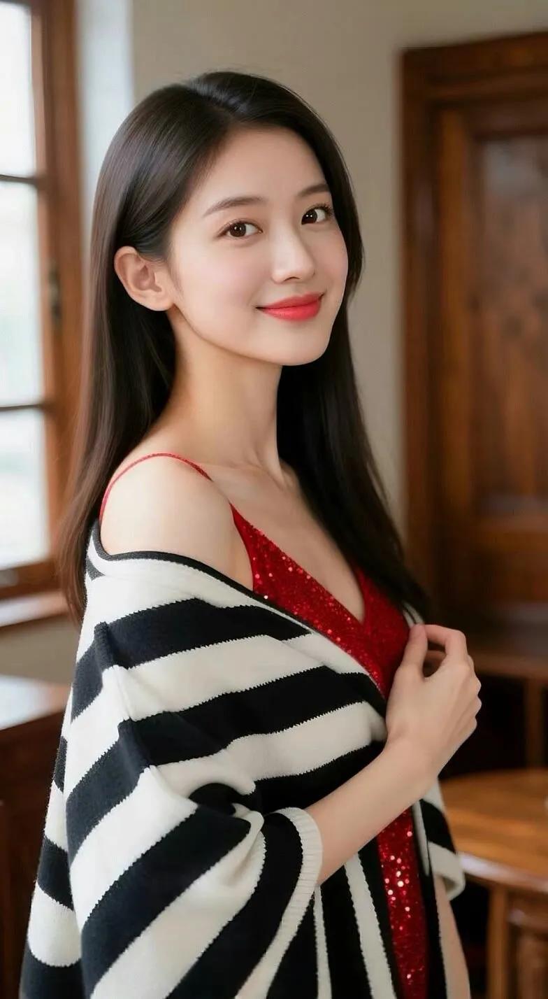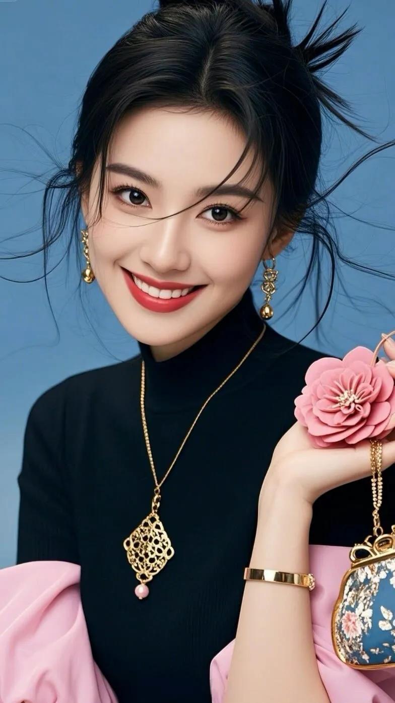甜美笑容,红唇诱惑,黑发飘逸,气质动人