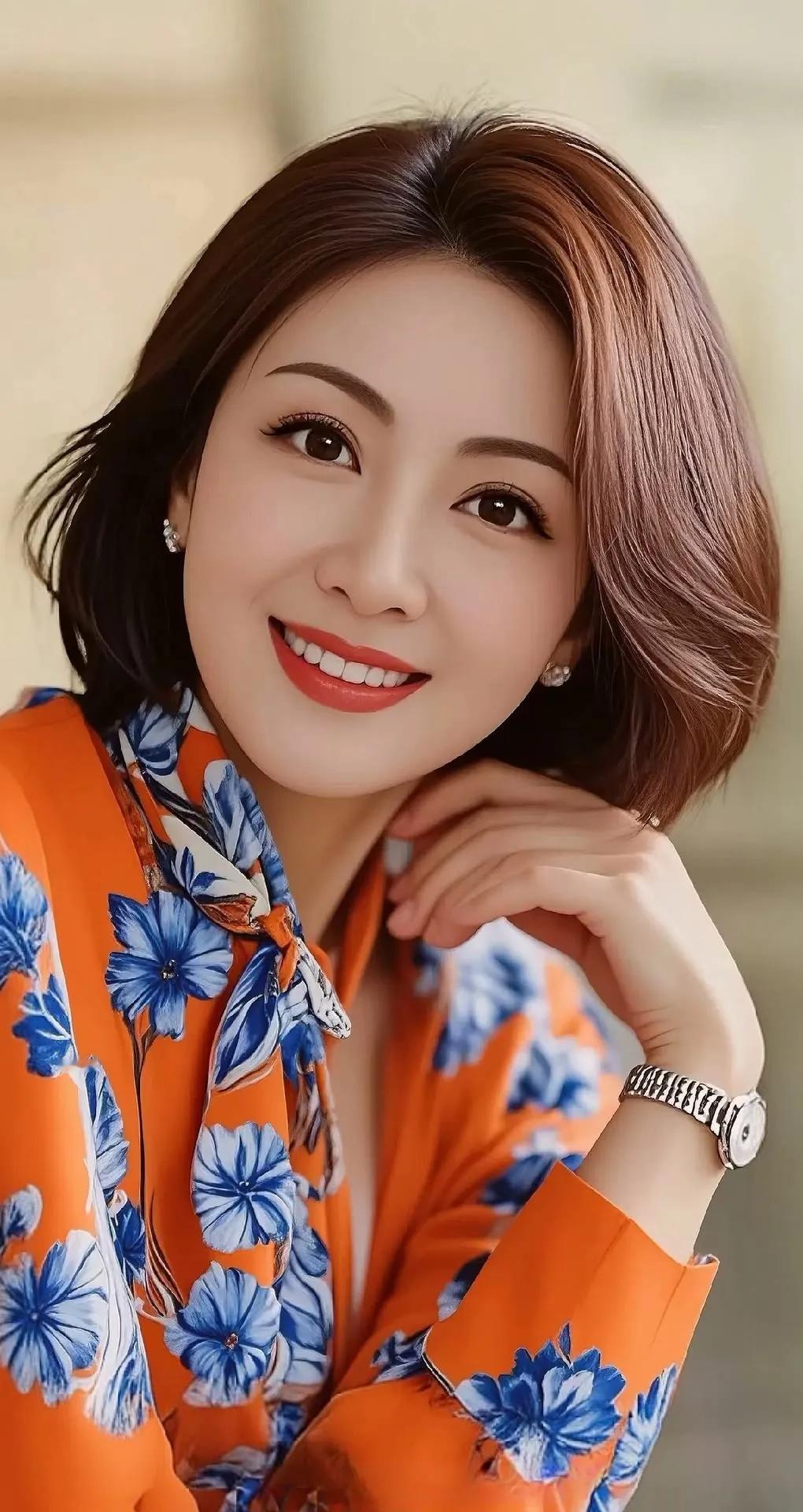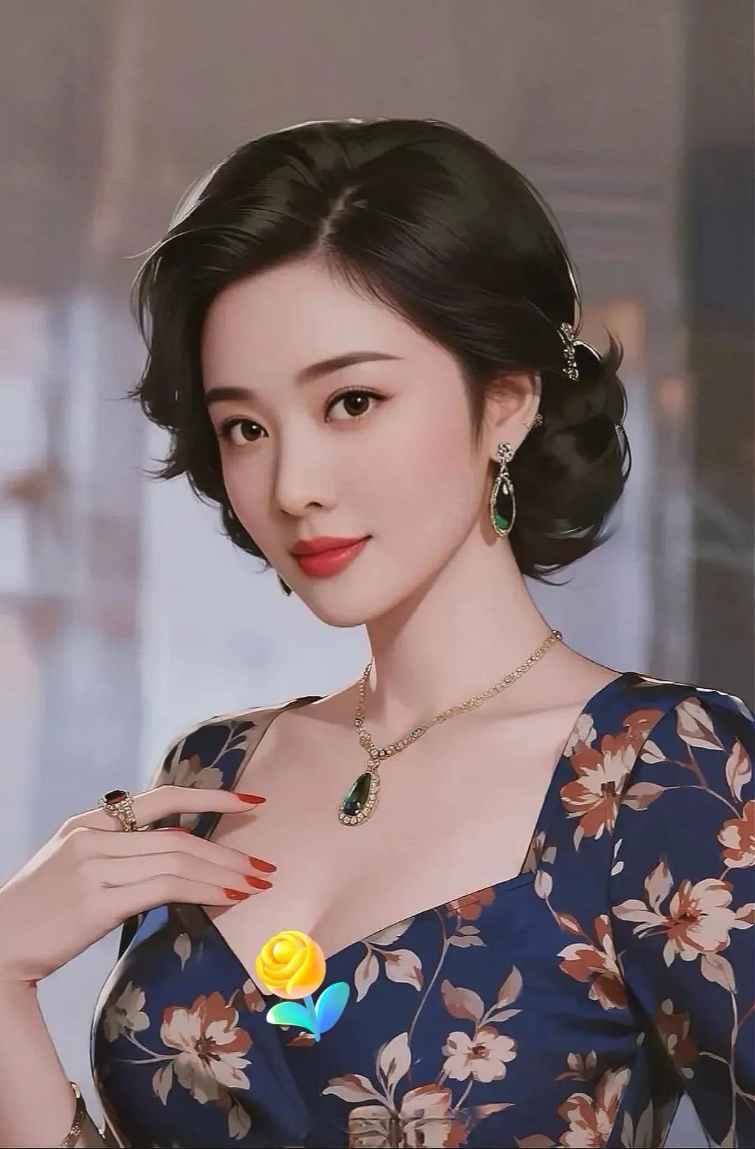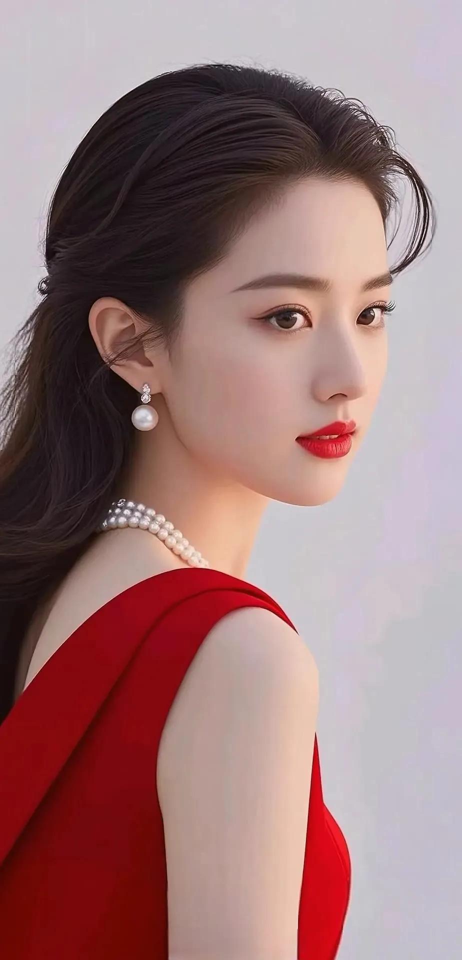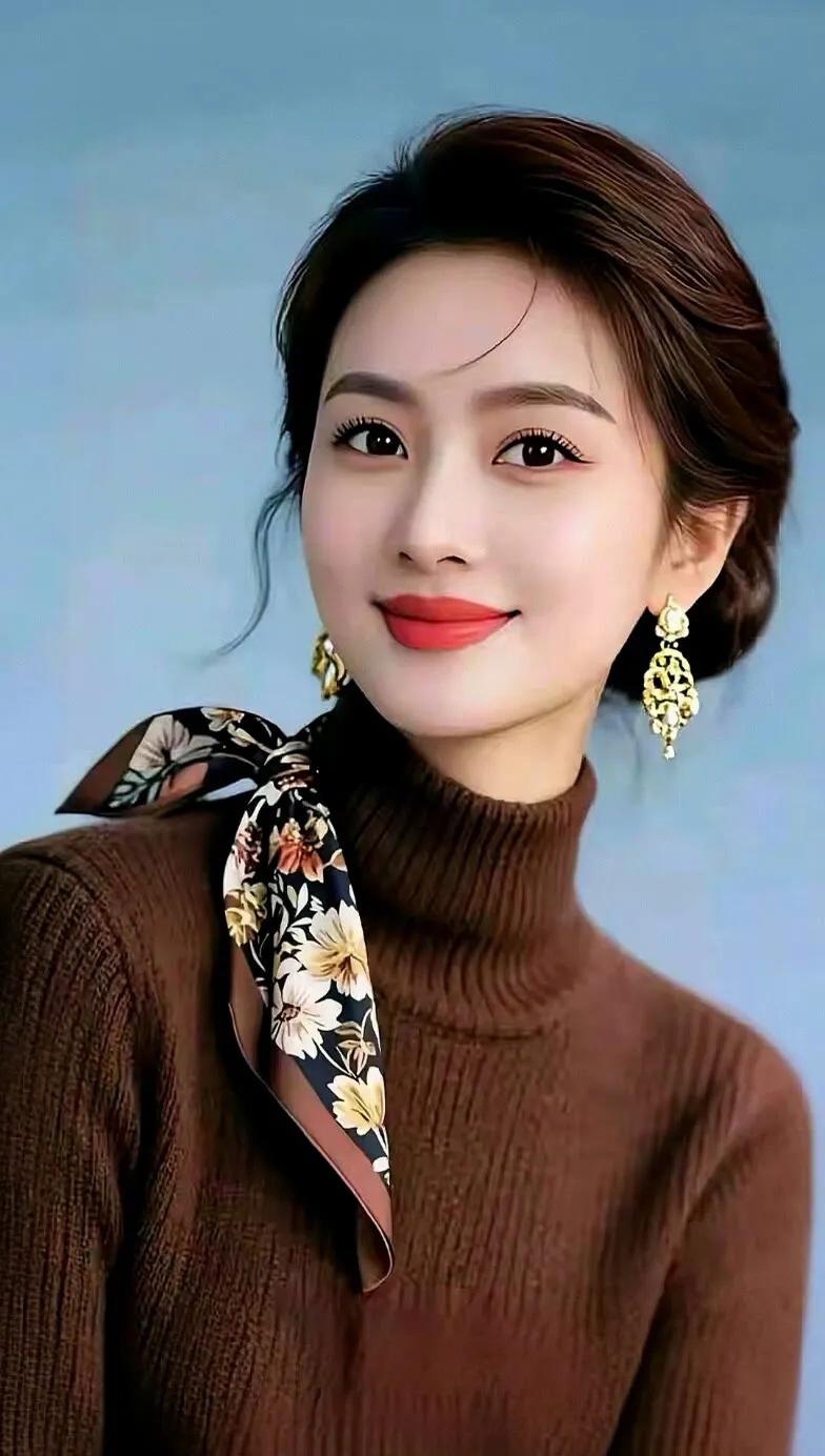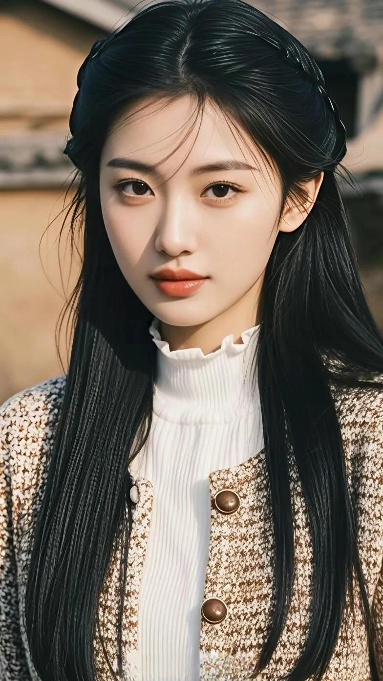 甜美笑容,红唇诱惑,黑发飘逸,气质动人