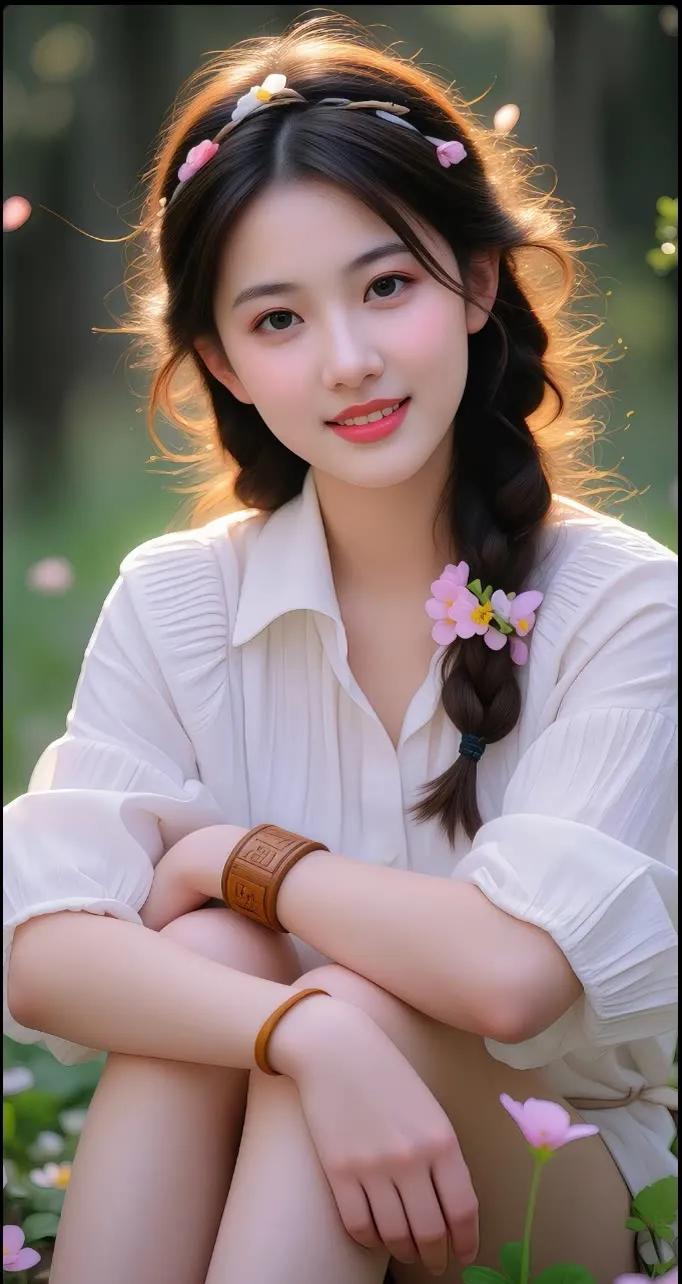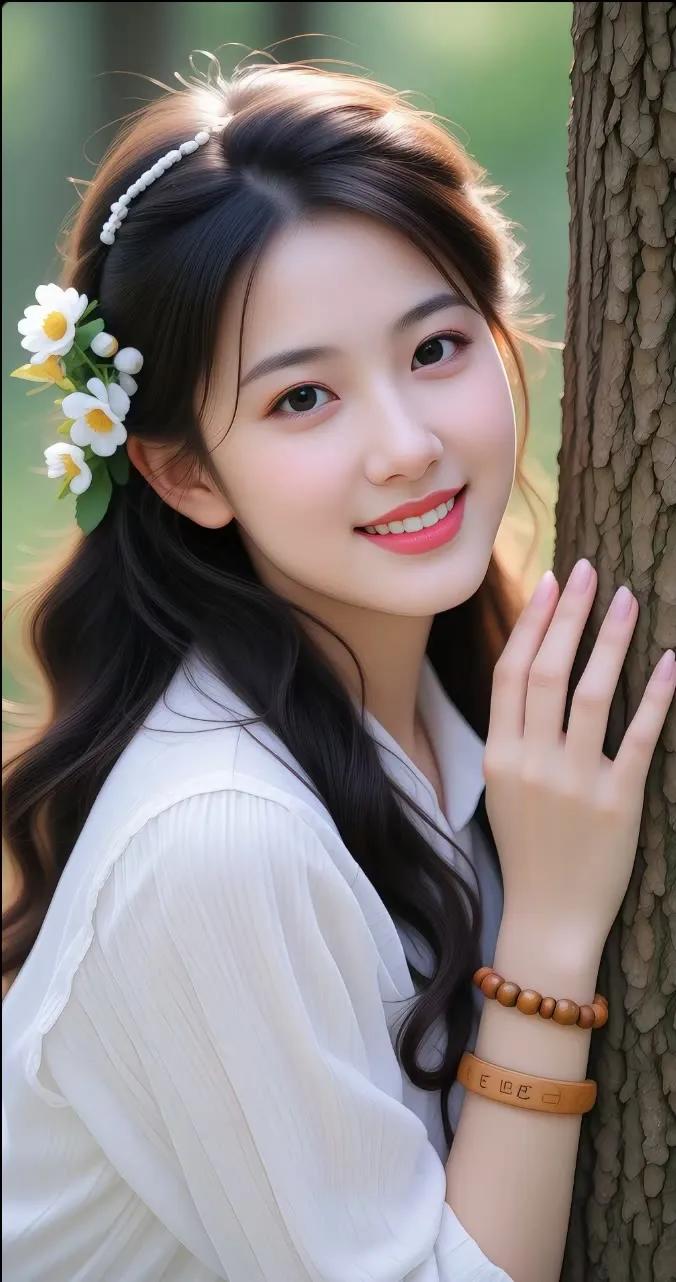 阳光下的少女,微风轻拂发梢,甜美笑容,青春洋溢。