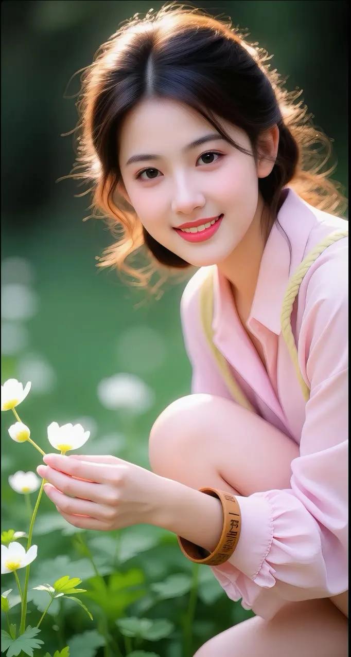 温柔甜美的少女,粉色毛衣搭配白色衬衫,笑容甜美,让人心动不已!💖💕💖