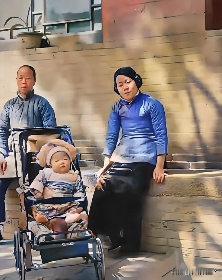 这便是孔祥熙的夫人宋霭龄年轻时的真实样貌,这而非演戏,也绝非影视剧里的演员,而是1916年27岁的宋霭龄带着女儿孔令仪在庭院沐浴阳光的真实写照。看看当时孔令仪坐的婴儿车,真是高级啊!