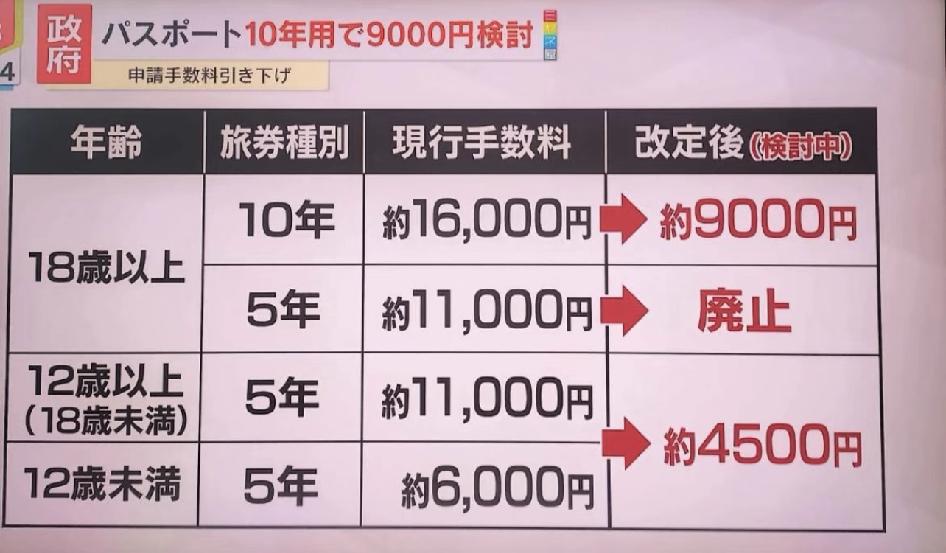 日本国签证涨价,日本国护照降价,下周发表 1、从外国来日本一般签证从3000日元涨到15000日元 2、从日本出国税一人1000日元涨到3000日元(所有人) 3、日本国10年有效期护照16000日元降到9000日元,取消5年制 4、18岁以下未成年5年有效期日本国护照直接降到4500日元。