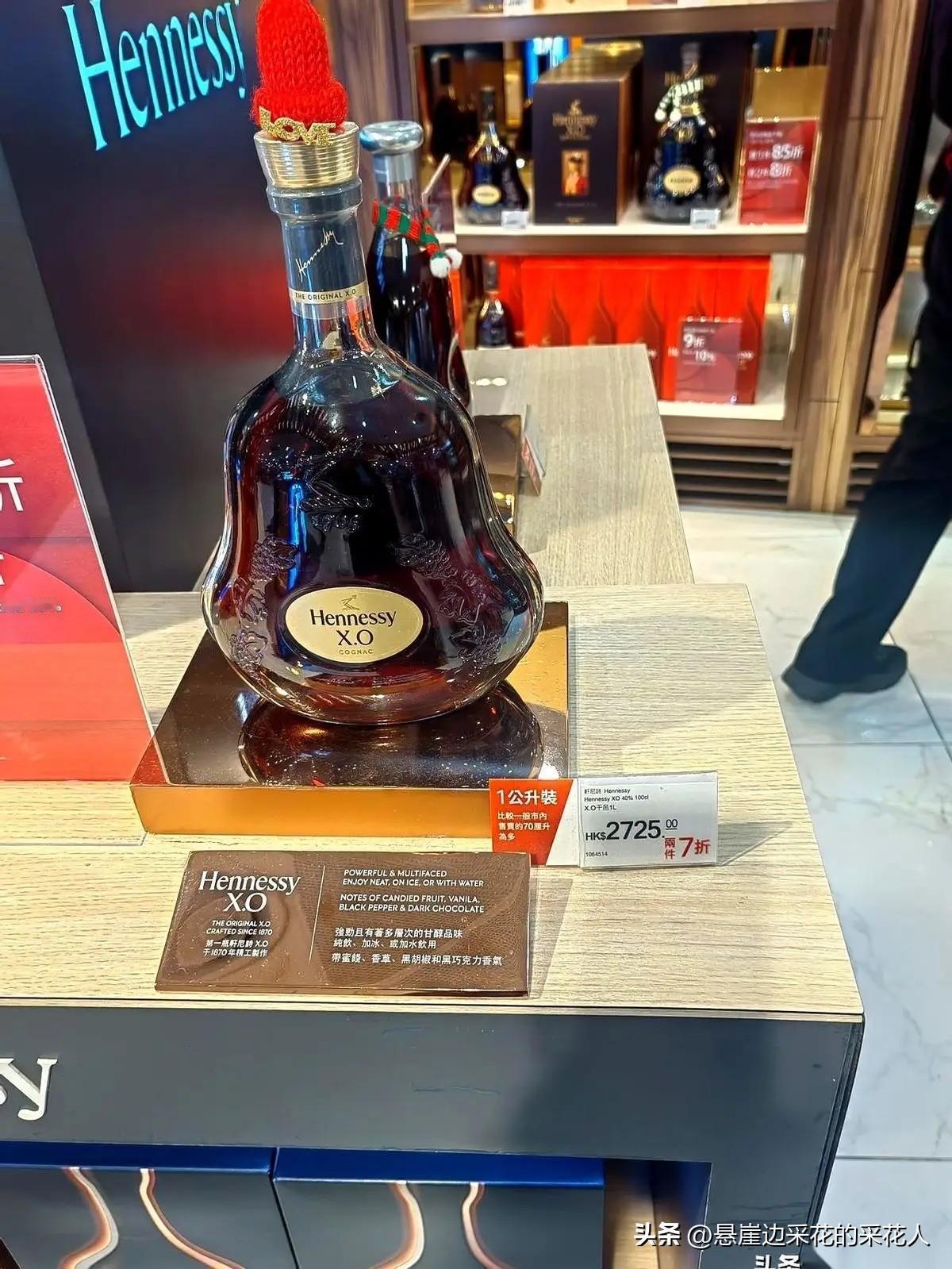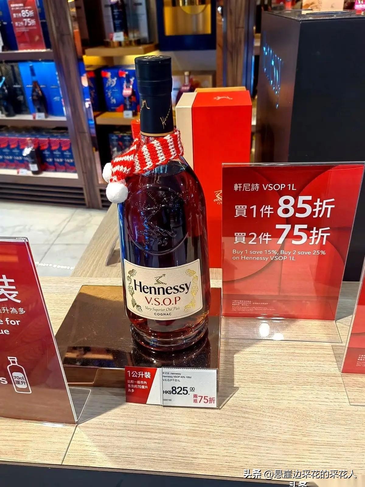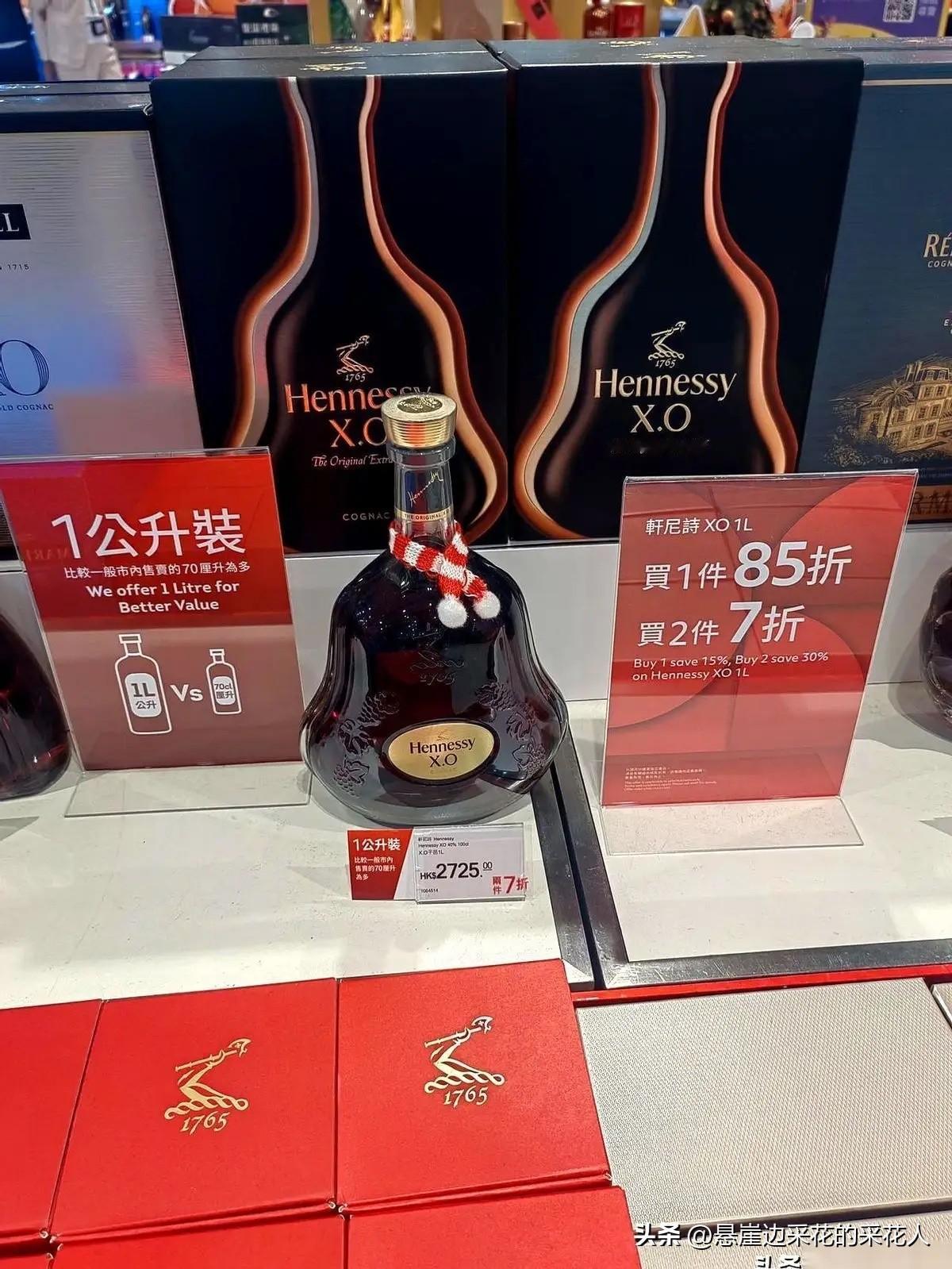 刚逛香港免税店,我直接看呆了!1升装的轩尼诗XO,标价2725港币,买两瓶就打7折,折算成人民币居然不到2000块一瓶,这价格简直让人惊掉下巴。 不光是顶配的XO有优惠,詹姆士轩尼诗一瓶1550港币,单买就给75折;就连VSOP也跟着凑热闹,买两瓶同样享75折。看着货架上一排打折的酒,我这钱包的手都快按不住了,属实有点心动。 不得不说,免税店的活动力度是真给力,这种实打实的折扣,对爱酒人士来说太有诱惑力了,难怪每次来都忍不住想剁手。