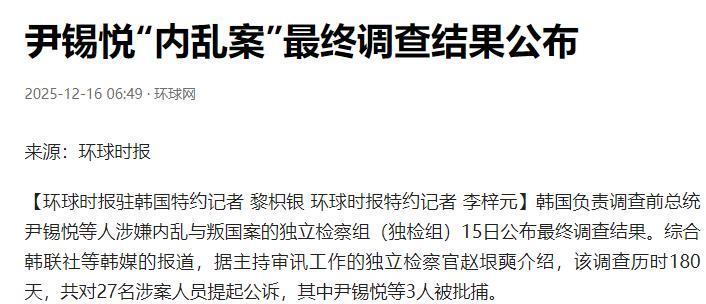 彻底凉了!韩特检组敲定尹锡悦终结局,金建希:你把我们拖入深渊 12月15日的韩国首尔,历经整整180天的深挖细查,负责调查前总统尹锡悦紧急戒严事件的内乱特检组,终于摊牌公布了最终调查报告。 这纸报告一出来,等于直接给尹锡悦的政治生命判了死刑,而最让人唏嘘的是,压垮他的最后一根稻草,竟然来自曾经浓情蜜意的妻子金建希。 谁能想到,曾经喊着“即使被枪毙也要扫清反对者”的尹锡悦,会落得如今这般众叛亲离的下场。 特检组的报告把他的野心扒得明明白白,早在2022年刚当上总统没多久,他就总跟身边人念叨要抓“紧急大权”,2023年10月更是开始实质性筹备紧急戒严,还特意调整军方人事,把自己的亲信安插进关键岗位,为后续行动铺路。 他的算盘打得精,就是想靠军队控制国会,再搞个替代国会的紧急立法机构,把行政、立法、司法三权全攥在自己手里,彻底清除异己。 为了给戒严找个合理借口,尹锡悦的操作简直突破底线。 他居然策划用非正常军事行动引诱朝鲜动手,比如派无人机去平壤挑衅,结果朝鲜根本不上当,这招彻底落空。 一计不成又生一计,他转头就把国会里的正常反对声音,污蔑成“反国家势力”搞内乱,硬是在2024年12月3日深夜仓促发布了戒严令。可他没料到,这场精心策划的“自我政变”只撑了6个小时就草草收场,国会很快恢复秩序,他自己也成了韩国宪政史上首个被起诉的现任总统。 特检组的证据链锁得死死的,不仅查到他提前安插亲信、策划挑衅邻国,还发现他在戒严前特意组建秘密小组,准备了锥子、铁锤这些刑具,打算抓30多个选举委员会的人立威,幸亏戒严很快失败才没酿成血案。 如今,尹锡悦被挂上了“内乱罪”“外患罪”两大重罪,特检组已经把他和另外23个人一起告上了法庭,接下来大概率要在牢里度过后半生。 比起法律的制裁,更让尹锡悦难堪的是妻子金建希的“反水”。 想当初两人可是韩国政坛的“恩爱标杆”,尹锡悦说过见金建希第一眼就沦陷,婚后天天给她做饭;金建希也总在竞选时帮他站台,国际场合形影不离。 可大难临头,所谓的夫妻情深瞬间碎成了渣。特检组一调查,金建希立马翻供,直接把锅全甩给尹锡悦,说戒严全是丈夫的主意,自己不仅没参与,还一直劝阻。 为了证明清白,金建希还拿出了关键证据——戒严前一天写给尹锡悦的信,信里明确说“不要走极端,你若执意,我绝不支持”,笔迹鉴定确认是她本人所写。 她还爆出猛料,说戒严令发布当晚,两人大吵一架,她当场怒怼尹锡悦:“都是因为你,一切都毁了!”这话一出来,特检组立马表态,没发现金建希参与戒严计划的证据,她的嫌疑基本洗清。 要知道金建希自己身上也一堆烂事,学历造假、收奢侈品、涉嫌操纵股价赚黑钱,可这波及时的“切割”,让她大概率能从轻发落,甚至可能全身而退。 现在的尹锡悦,在拘留所里等着明年1月的首个判决,保释申请被驳回,支持率早就跌破20%;而金建希却忙着通过律师放风,说自己在看守所瘦成皮包骨头、精神崩溃,靠示弱博同情。 这场闹剧彻底撕开了韩国政坛夫妻档的虚伪面纱,所谓的情深义重,在牢狱之灾面前,不过是优先自保的算计。 尹锡悦用自己的人生证明,再大的野心也抵不过法律的制裁,而金建希的“怒撕”则告诉所有人,在权力的棋局里,从来没有永远的队友,只有永远的利益。