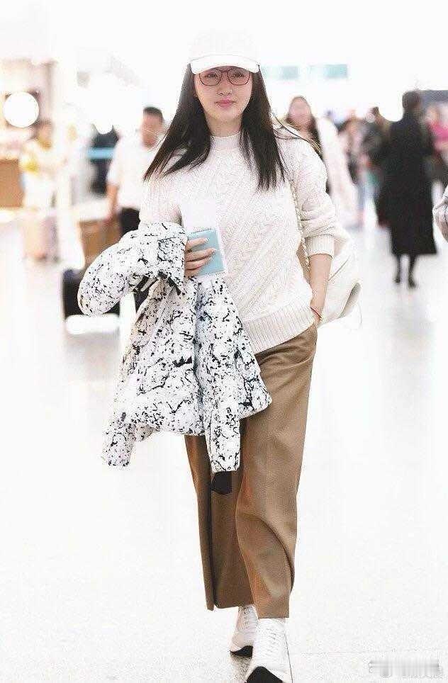 杨钰莹这是越活越年轻,一身白色绞花毛衣搭配阔腿裤,既显高级感又超级减龄,时髦度满分!