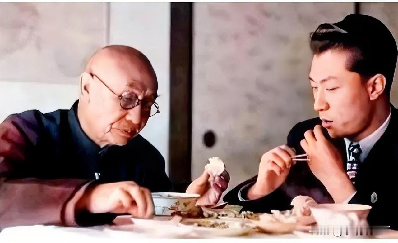 这是阎锡山晚年和他的儿子阎志惠一起用餐时的老照片,拍摄于1958年的台北。这而非演员扮演,而是货真价实的真品,父子二人外貌呈现的十分清楚,一望而知。