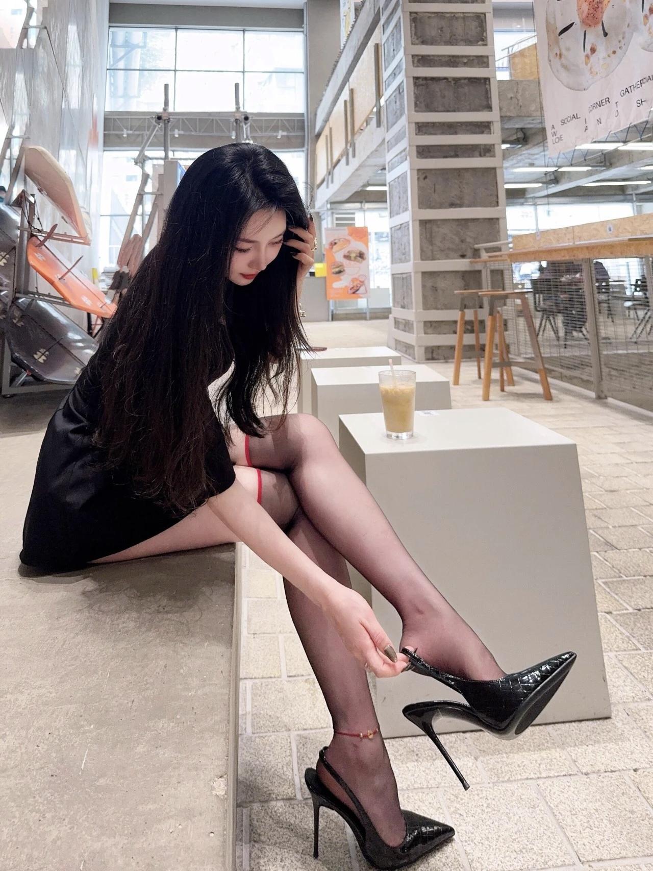 都市街头,黑丝短裙,优雅姿态,时尚穿搭