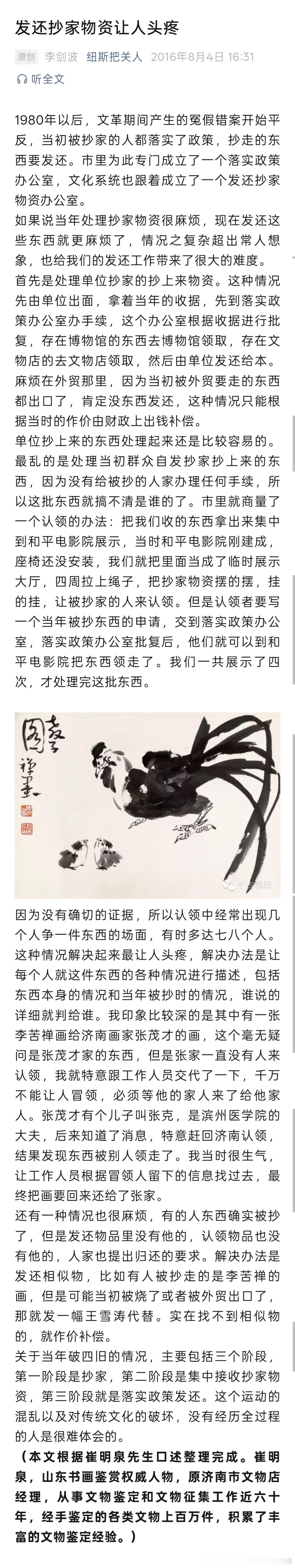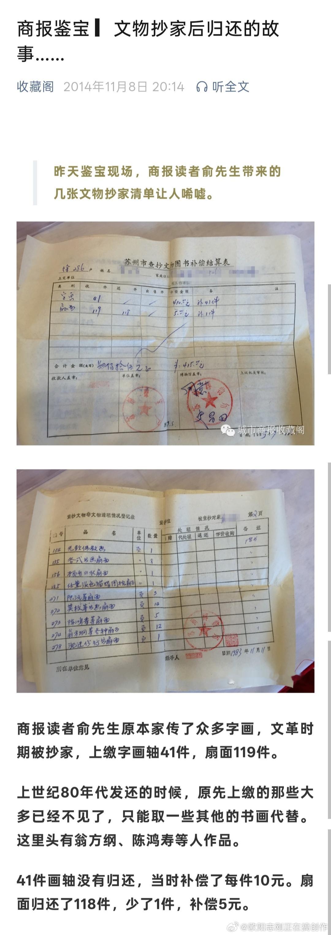 当年抄家之后文物返还。
