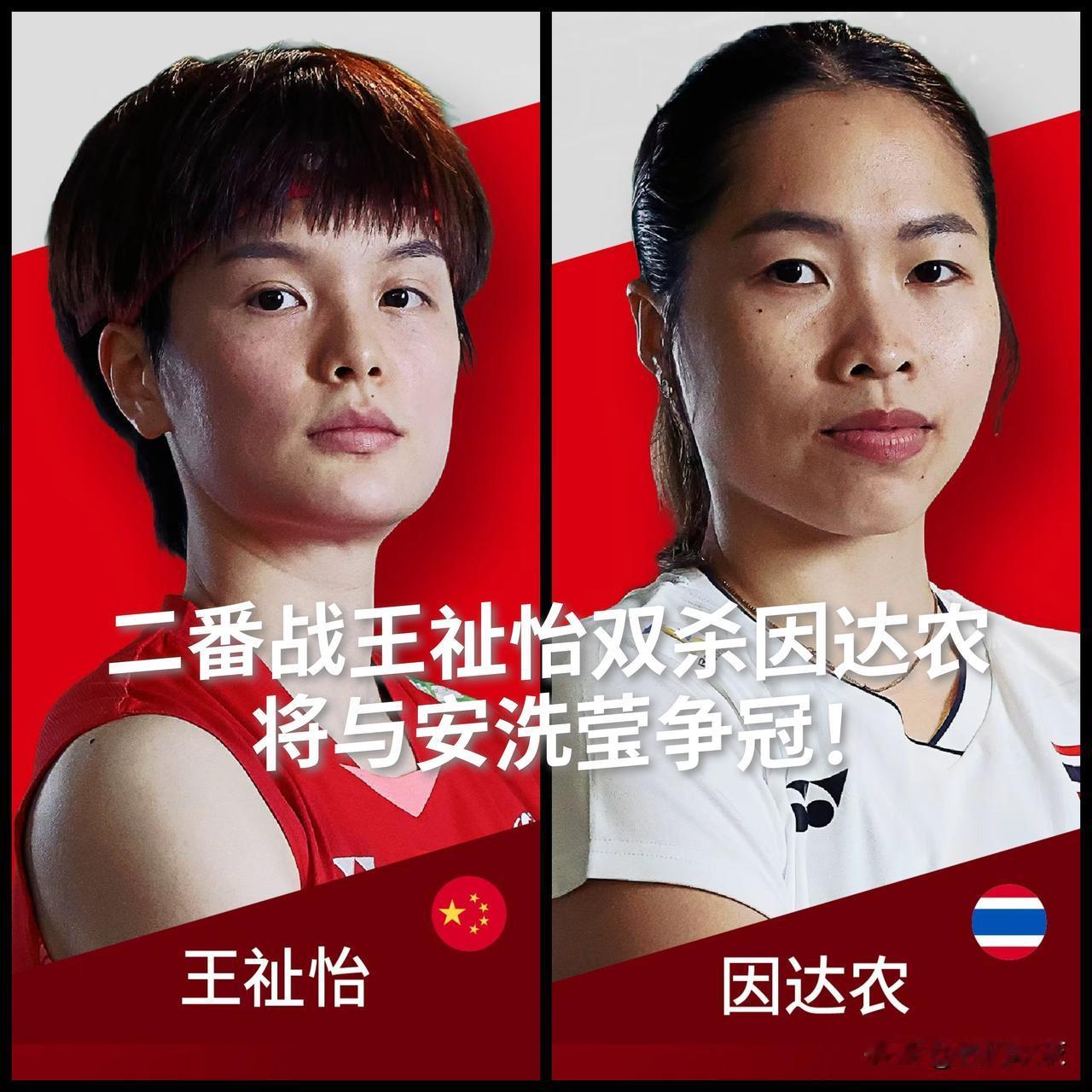 【二番战王祉怡双杀因达农,决赛将于安洗莹争夺冠军!】 2025世界羽联年终总决赛女单半决赛次场,中国球员王祉怡以15-21先丢一局后以21-17、21-11连扳两局逆转泰国球员因达农晋级决赛。 这是两人本届赛事继小组赛后第二次交手,首次交手王祉怡完胜,这次逆转。 女单决赛,王祉怡将于安洗莹争夺冠军。