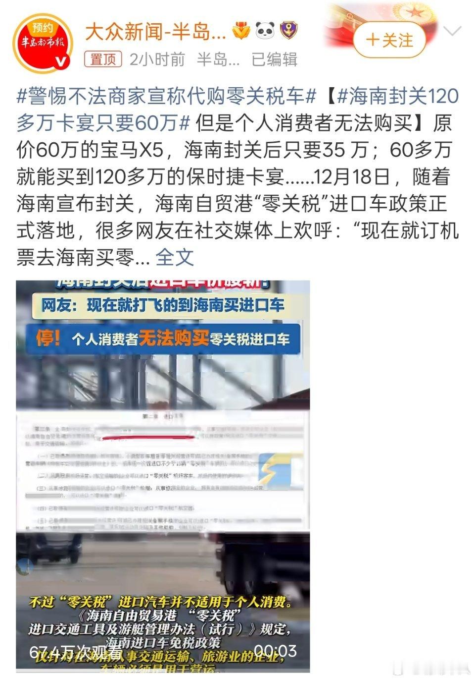 海南封关120多万卡宴只要60万“但是个人消费者无法购买”,那报道这个的意义是什么?