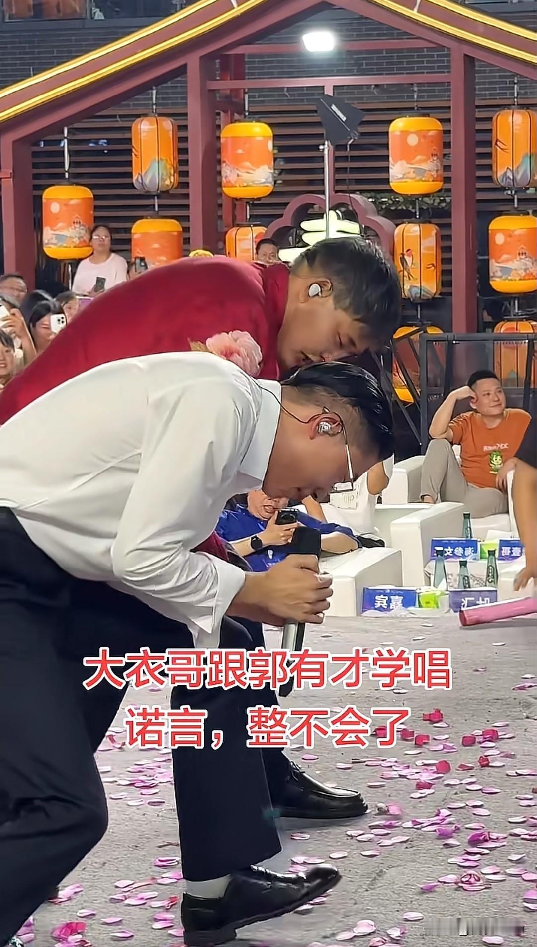 一个是草根大网红,一个是知名网红巨星,都是山东菏泽人。他俩同台,大衣哥跟郭有才学唱《诺言》也整不会了。 凭借《诺言》一夜爆火的菏泽小伙郭有才,和大衣哥不仅是老乡,还成了他的“音乐师傅”。 视频里,大衣哥一脸认真地跟着学习,可一到副歌高潮,调子就直接“起飞”,整张脸都写着“我太难了”。 (图片来源于网络) 菏泽曹县郭有才如何评价大衣哥朱之文 山东郭有才 郭有才唱诺言