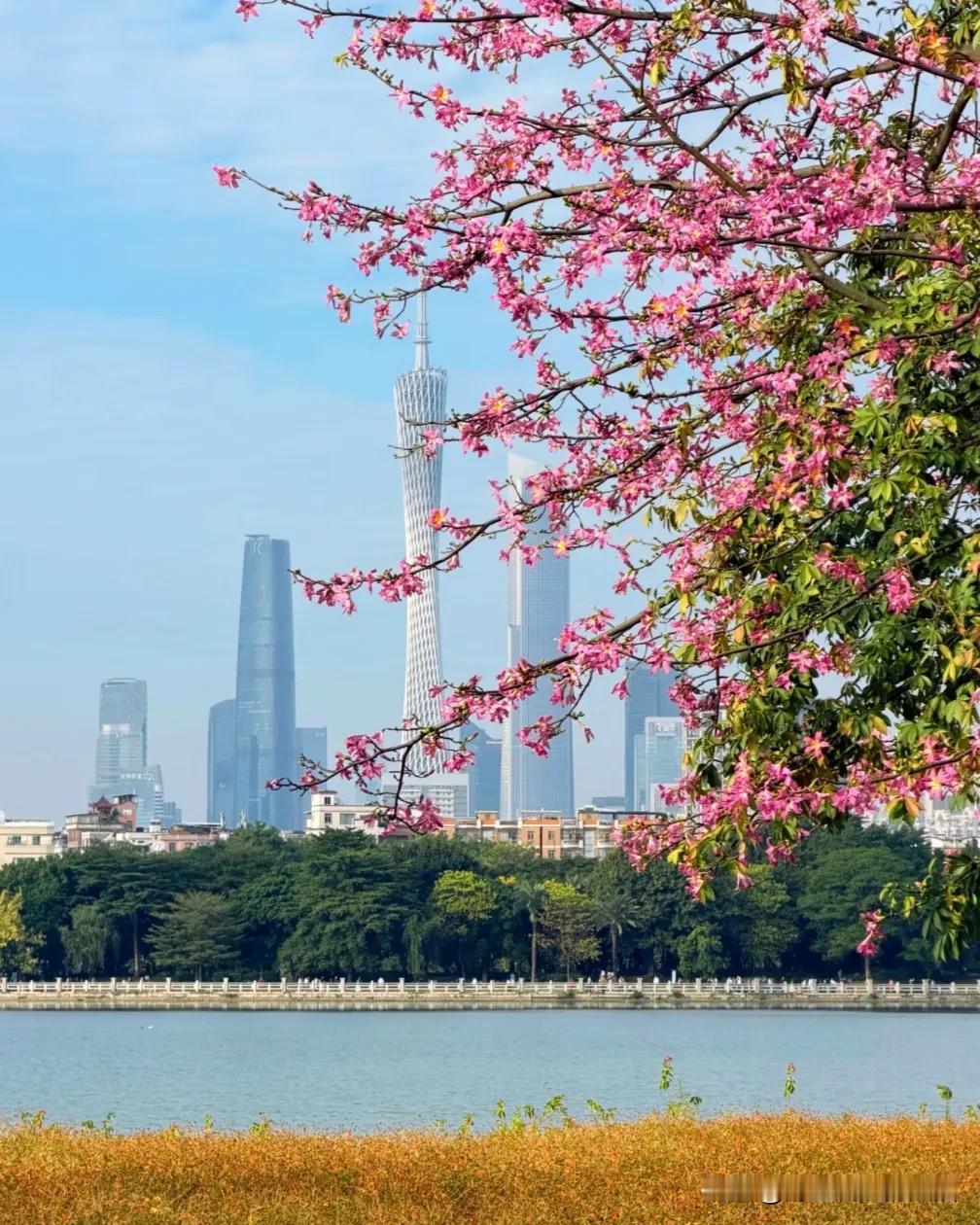 12月份去广州,才算真正见识到花城的魅力。海珠湖公园绝对是打卡首选,沿湖的落羽杉与远处的广州塔同框,那反差感直接拉满。3公里的环湖步道,每一个转弯都有新惊喜。用广角镜头在早红的落羽杉下,能把广州塔和红叶一起框进画面,发朋友圈超惊艳。 除了海珠湖,城市里也处处是美景。有轨电车在花海中穿梭,立交桥和马路上簕杜鹃等花儿盛放,从空中俯瞰,就像给城市描上五彩边框。12月的广州,白天繁花似锦,夜晚江畔流光溢彩,值得一探究竟。