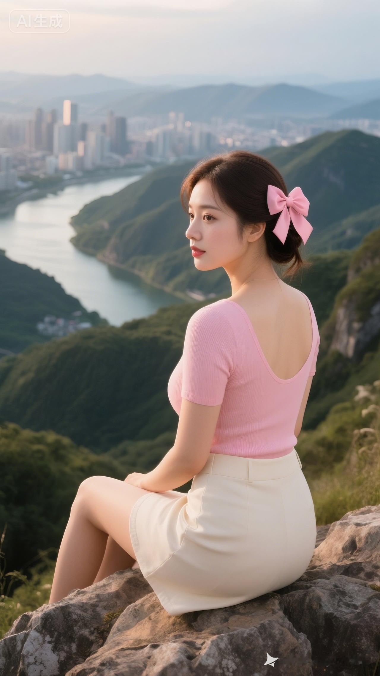 山间少女,粉裙飘飘,城市与自然交织的浪漫时光。