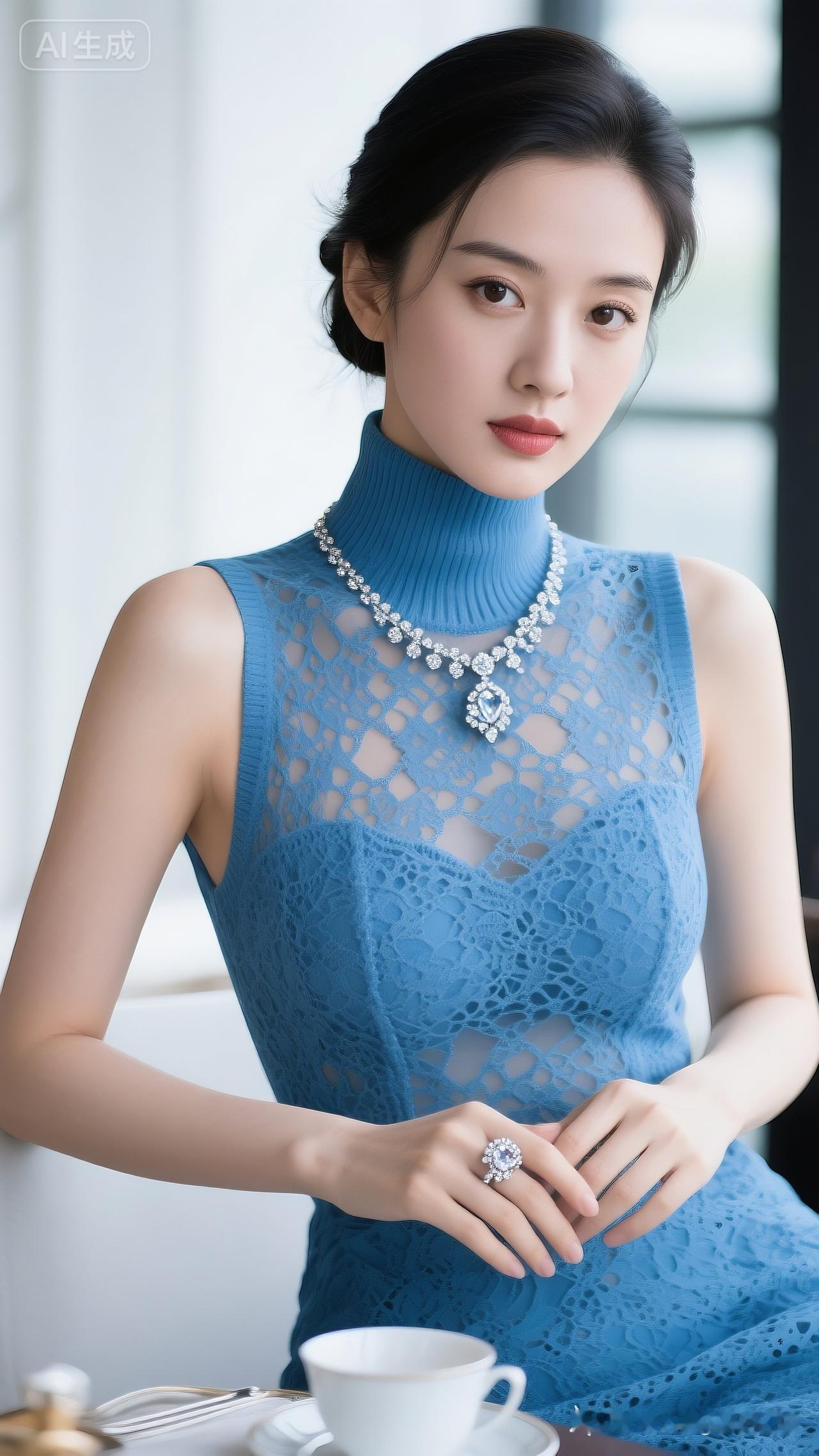 优雅蓝调,蕾丝连衣裙搭配珠宝,尽显女性魅力!