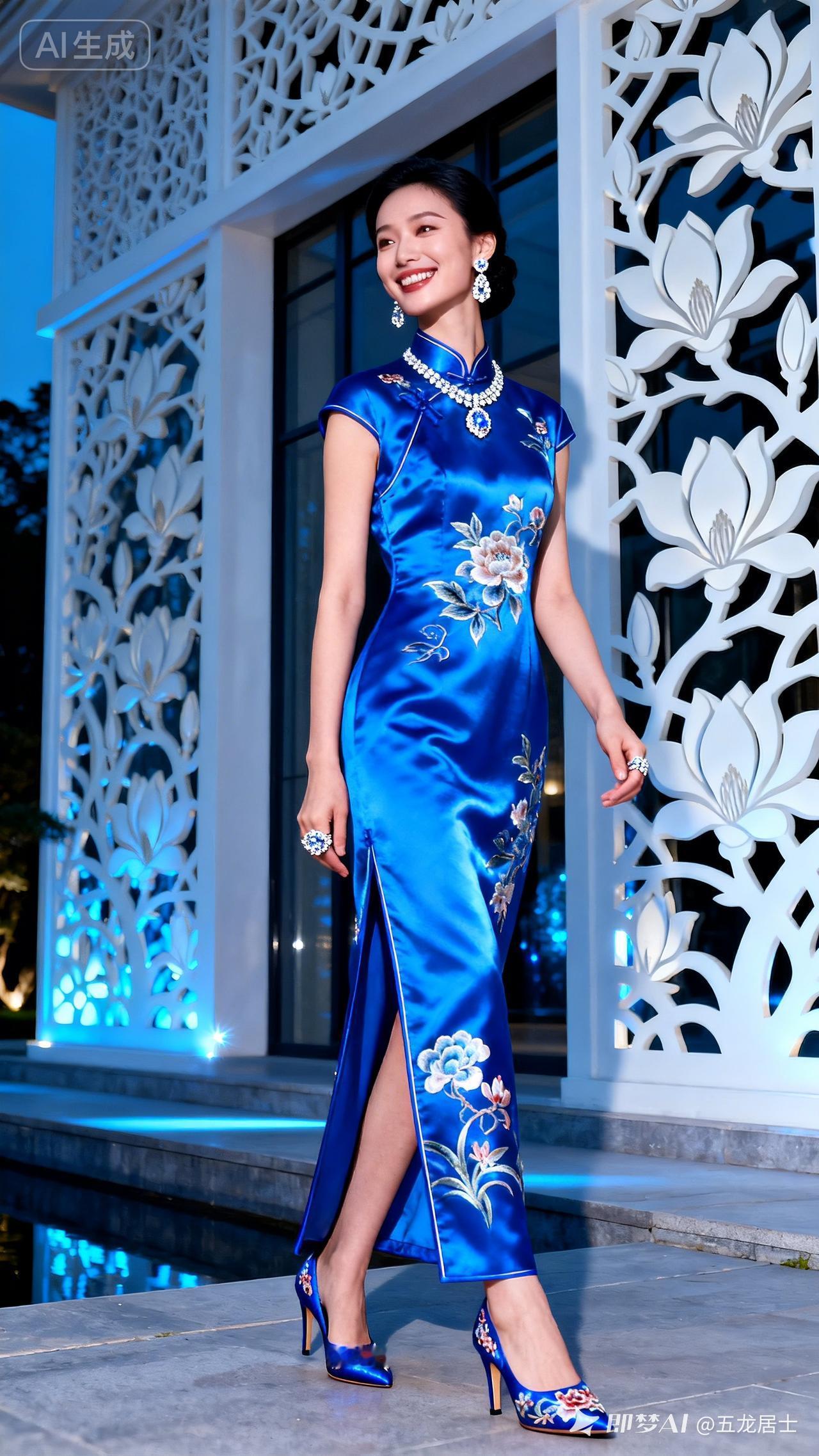 优雅蓝裙晚宴穿搭,尽显东方韵味!