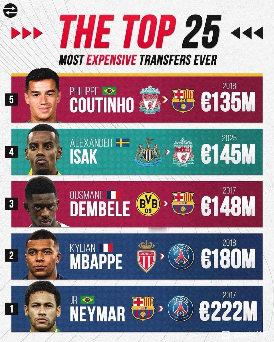 大巴黎为什么能拿欧冠,这份足坛历史最贵转会就能说明。 他们花2.22亿欧元买内马尔,巴萨得到巨资再买库蒂尼奥,还有当时的登贝莱。 加上1.8亿买18岁的姆巴佩,大巴黎起航。 如果不花钱谁认识大巴黎呀,今年的辉煌都是钱砸出来的![得意]