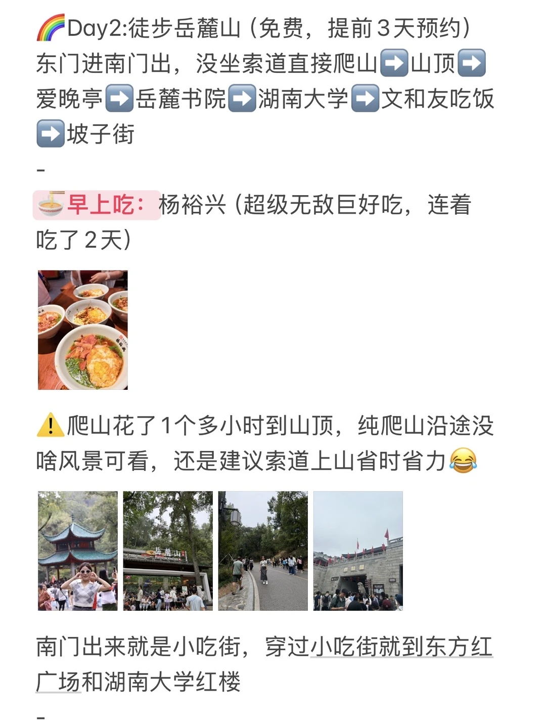 东门进南门出,没坐索道直接爬山➡️山顶➡️爱晚亭➡️岳麓书院➡️湖南大学➡️文和友吃饭➡️坡子街