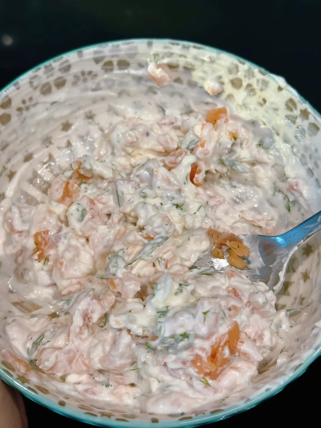 很推荐缺德舅这款三文鱼,肉质肥美而且不怎么咸,我再搭配酸奶和柠檬汁,口感就很轻盈不会腻,也相对健康!如果想要更creamy的口感,可以全用奶油奶酪或用一部分酸奶油~