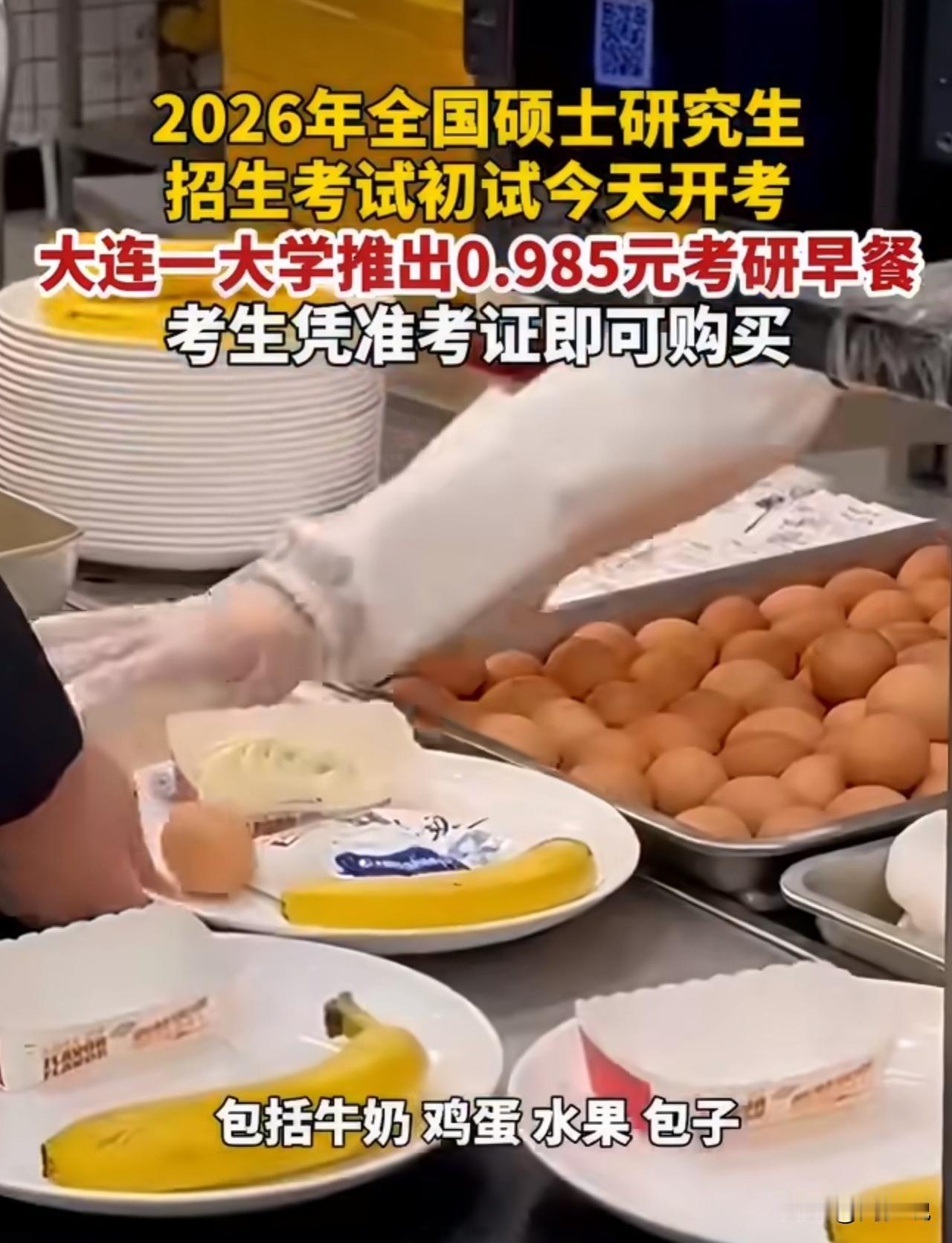 这波操作,直接把“温度”拉满了!大连理工大学,一件小事悄悄火了:学校给考研学生推出了0.985元的“考研早餐”。一杯牛奶、一个鸡蛋、一份水果、再加一个包子,只要0.985元,考生凭准考证就能买到。食堂还开放了深夜自习室,附属中心医院专门熬制了免费的“补元登科饮”,补气血、和胃健脾,还给学生安排了心理咨询,帮大家缓解考前焦虑。 这一波操作让不少网友纷纷表示:“这才是真正的‘985’关怀,不只是录取通知书上的那行字。” 在动辄谈“内卷”“焦虑”的时代,周少认为大连理工大学愿意把心思花在一顿早餐、一杯中药、一间自习室上,其实是在用行动告诉学生:你不是一个人在战斗。 教育不只是分数和排名,更是在你最疲惫、最迷茫的时候,有人给你递上一杯热饮、一句“加油”。这种被看见、被在乎的感觉,本身就是最好的教育。#寻美三湘# #长沙新朋友#