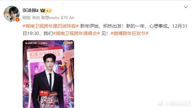 张凌赫湖南跨晚官宣 太好啦!想知道是唱歌还是跳舞呢?!狠狠地期待住了!2025娱