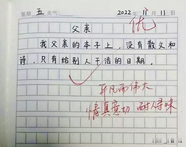 一篇优秀作文《父亲》,看着看着眼眶就红了,简简单单几个字,却写出了父亲的平凡伟大,情真意切,耐人寻味….#寻美三湘# #长沙新朋友#