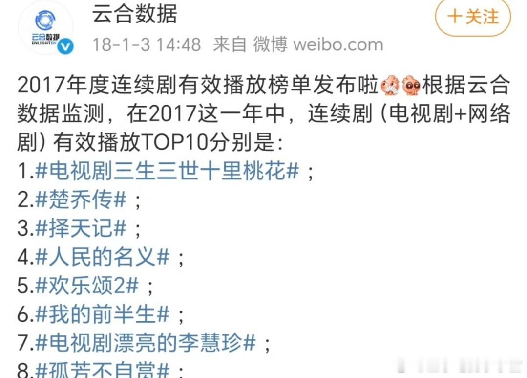 谁能想到,两部2017年播出的剧,现在居然跑出来抢云合史冠,还被推上了热搜,这个