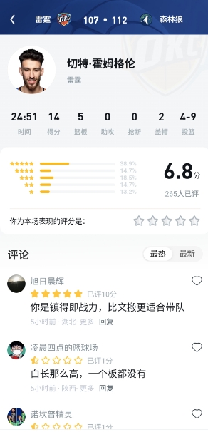 霍姆格伦一个篮板没有,白长一个子, UC直播间球迷嘲讽扶不起的阿斗