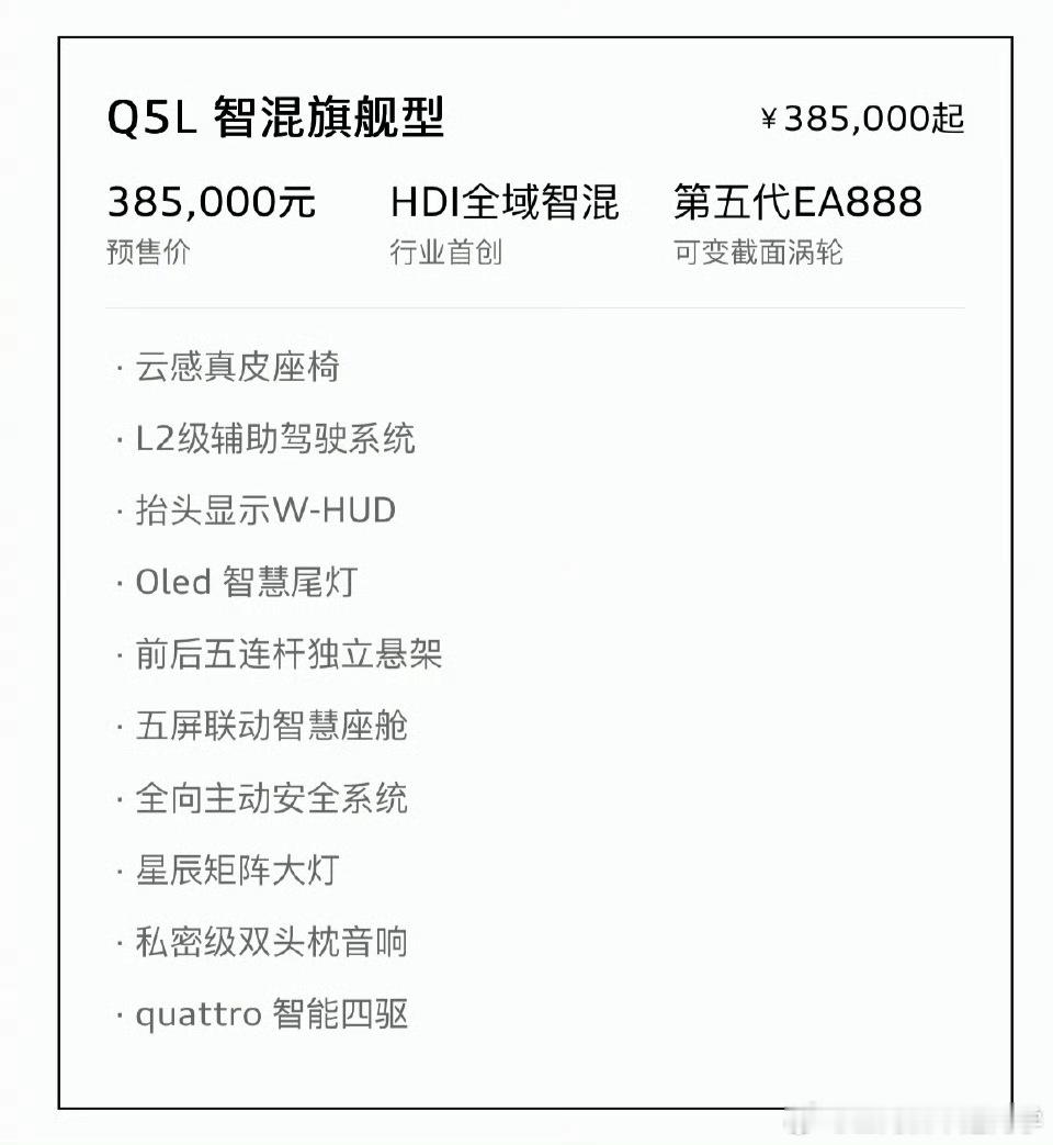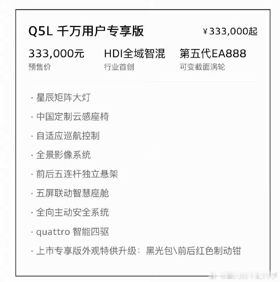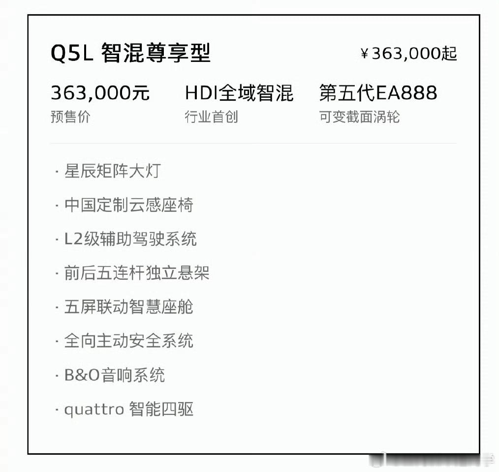 全新奥迪Q5L预售了31.3万起,第五代EA888大换代的BBA说来就来,也没有前摇,好样的