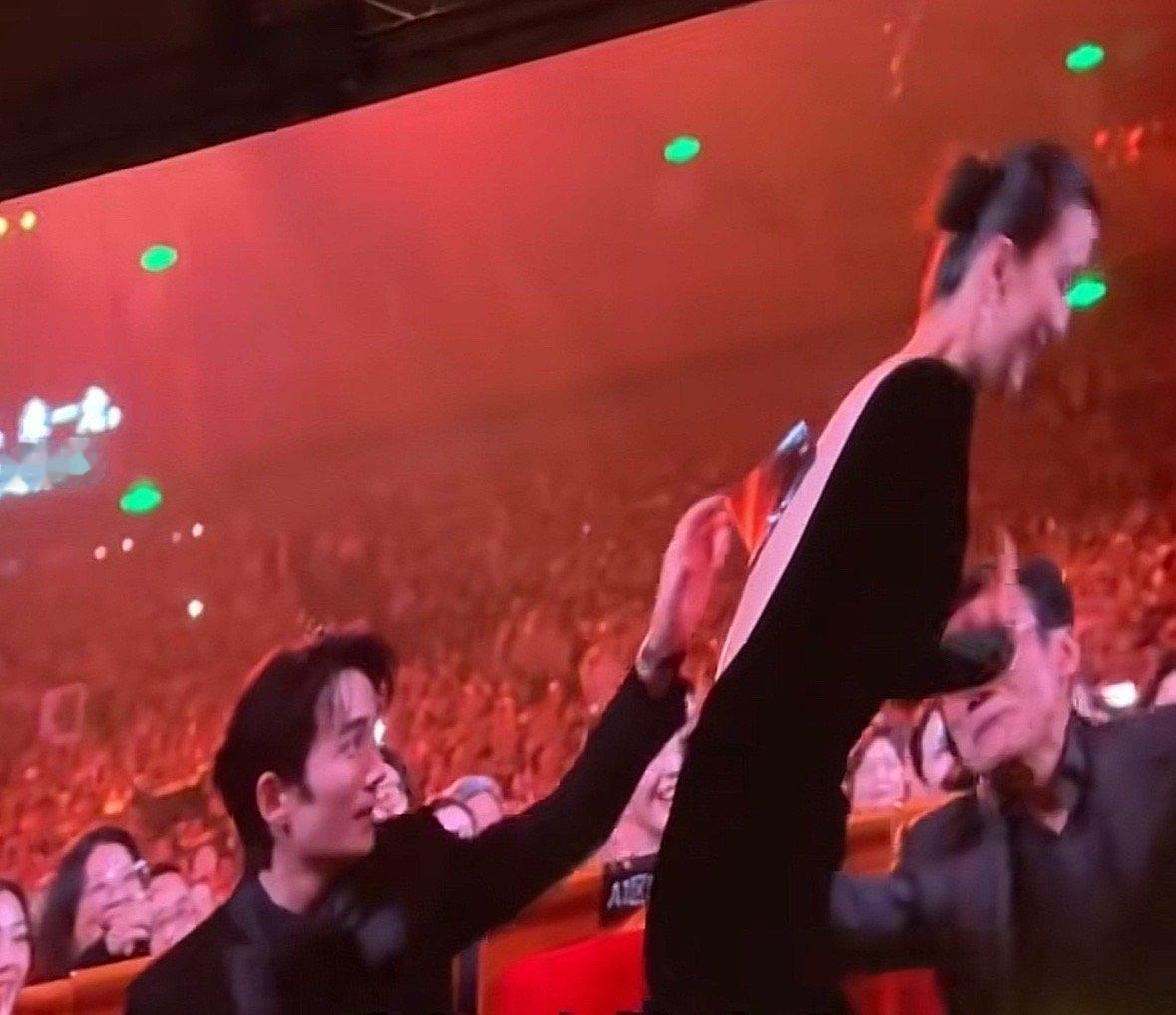 朱一龙:哎,宋佳姐,你背上贴着名字呢,转过来我帮你摘掉。 宋佳:啊,还真有啊,刚才忙着上台没注意,谢谢你啊龙哥。 朱一龙:没事,这贴纸黏得还挺牢,我轻轻弄,别把你衣服扯坏了。 宋佳:你这手法挺熟练,平时没少帮人解围吧? 朱一龙:也不是,就是细心点,别让这种小东西影响状态。再说这环节挺有趣,跟撕名牌似的。 宋佳:哈哈,那可不,金鸡奖主持人大点兵都能玩成综艺现场,你这波操作我给满分。 朱一龙:主要是不想让你带着“标签”上台,咱得漂漂亮亮地亮相。 宋佳:行,那我待会儿也帮你留意,有贴纸马上解决,礼尚往来。 朱一龙:成交,不过真要玩撕名牌,我可不一定输。 宋佳:哟,挑战来了?那咱们台上见真章,看谁先被“撕”掉。