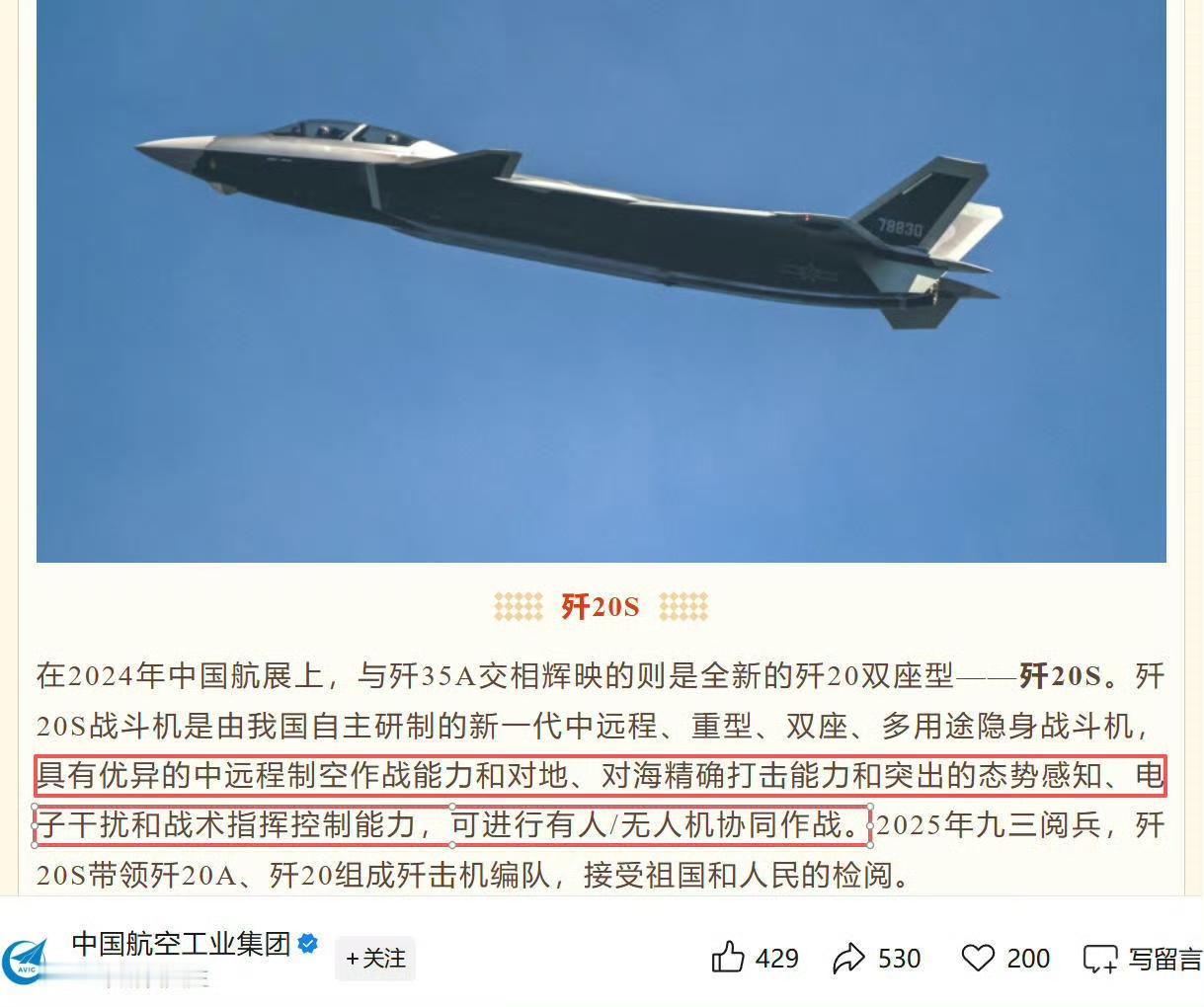 官宣了,歼-20S真不愧5.5代机,从防御型空军向进攻型体系作战的转型中,歼-20S正是关键拼图。它模糊了战斗机、预警机与电子战飞机的界限,既能在远海与歼-35、055驱逐舰协同构建空海突击网,也能在纵深作战中充当前沿指挥节点,联动火箭军、地面防空系统形成闭环打击链。这款战机的官宣,不仅是中国航空工业的技术突破,更是空战理念的革命——未来战场的胜负,终将取决于谁能更高效地整合全域作战力量,而歼-20S已然抢占了智能空战的先机。