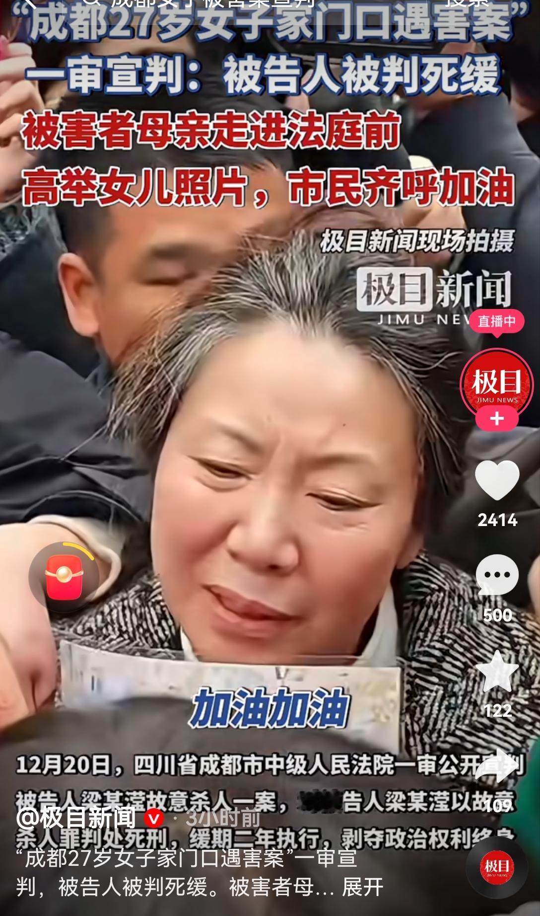 [可怜]成都“27岁女生(紫雅)家门口被害案”,一审今日宣判(看来年底法院确实辛苦,周末都在加班),凶手梁某被判处死缓,很多人都在问——为何不能立执?[思考]成都中院同时发了一个很长的“说明”,其关键点是——有专业鉴定机构(据说是华西)鉴定被告实施违法行为时是“限制刑事责任能力”,并且鉴定人还出庭接受询问,按照现有法律框架,法官很难在这种情况下否定“鉴定意见”,这才是全案的“核心争议点”——但有一说一,即便是华西的鉴定结论,我个人也对这种“事后鉴定刑事责任”程序的科学性持怀疑态度…