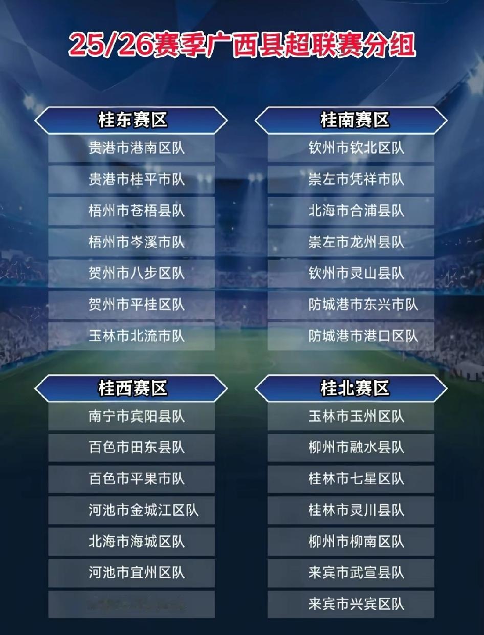 广西“县超”联赛今天正式开幕,这是由广西体育局与各地级市一起主办的,分为四个赛区,28个球队参赛。与苏超、湘超、赣超联赛不同的是,广西的足球联赛以县(区)为单位组队参赛。 总体上来说,以县为单位参赛,球队的球员实力估计要比那些以地级市组队的球队实力差一些,但这肯定要比村超的水平更好一些,而且以县为单位组队也是具有比较好的社会足球的群众性。 当然,广西之所以要举办这样的足球赛事,也应该是看到了全国各地的城市足球联赛火爆出圈,这看在谁眼里都是会心痒痒的,不管怎么样,能够举办这样的群众赛事肯定会对足球运动发展是有帮助的。