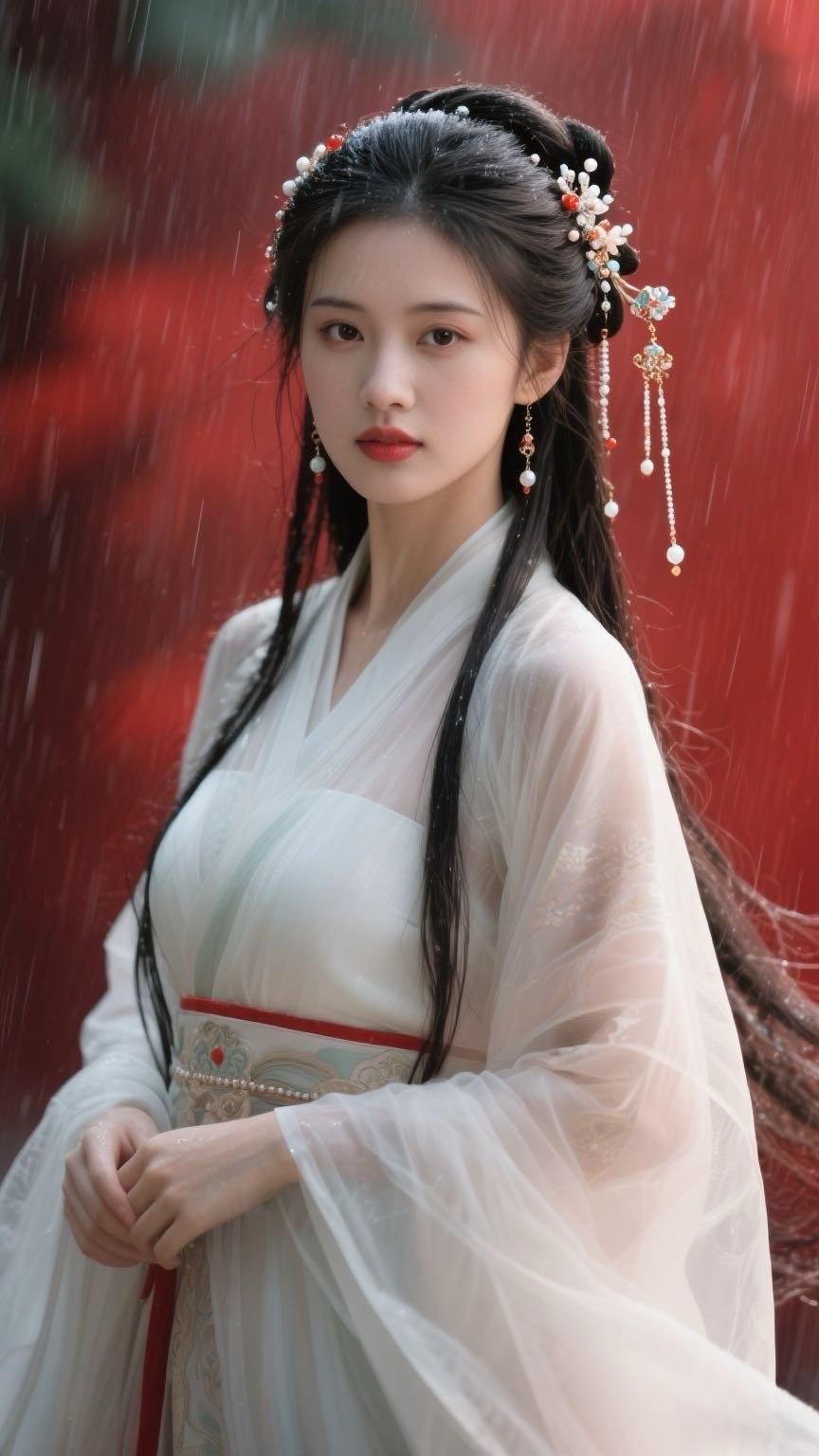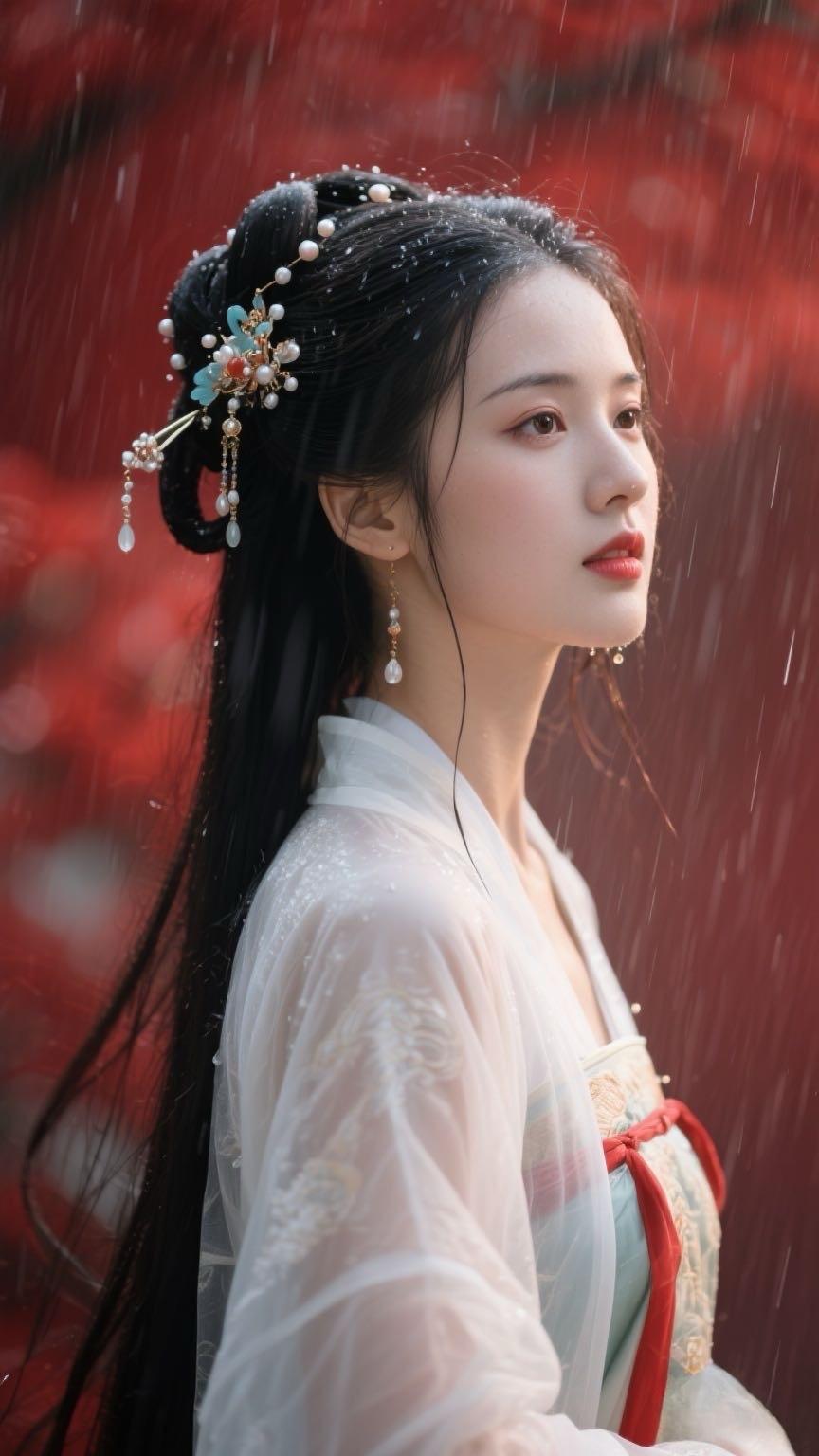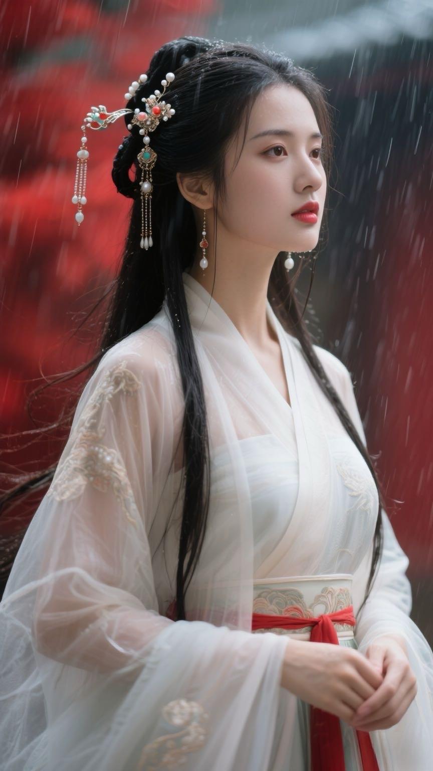 雨中红衣美人,古典韵味十足 古韵红衣女神 古典红裙佳人 红衣佳人写真