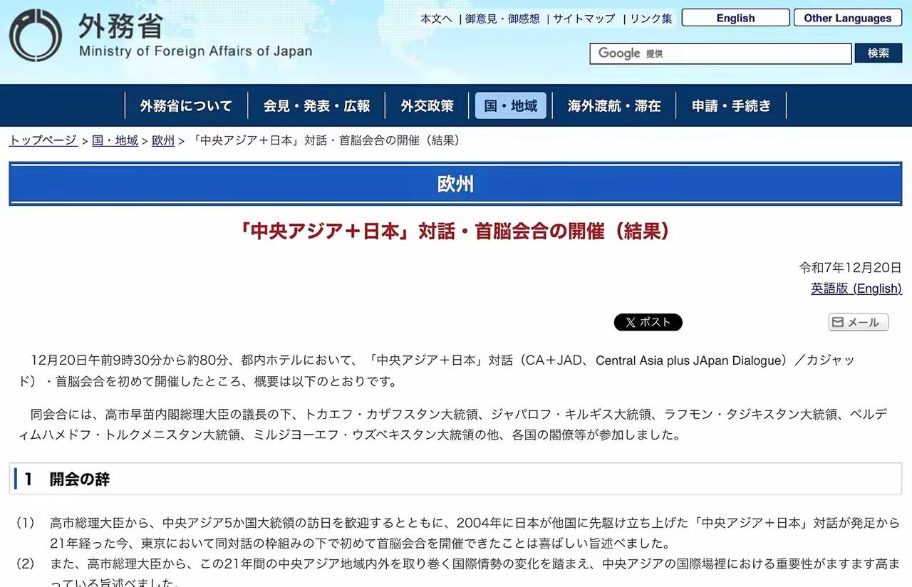 12月20号上午,日本与中亚五国的首届首脑峰会正式举行,并且通过了所谓的《东京宣言》。那么宣言当中讲了一些什么?双方又达成了什么样的具体合作成果呢? 宣言共53条,核心是把日本对中亚“政府+民间”投资总额锁定在5万亿日元,约合330亿美元,时间跨度5年,相当于日本2024年对外开发援助总额的1.4倍,力度空前。 能源与矿产最显眼:日方承诺帮助哈萨克斯坦建设稀土精炼厂,使日哈稀土贸易量从2024年的3000吨提升到2028年的1.2万吨;同步在乌兹别克斯坦合资建铀燃料棒前端加工基地,可满足日本核电站年需求量的15%,降低对俄核燃料依赖。 交通条款写入“里海路线”——跨里海国际运输走廊(TITR),日方提供低息贷款2000亿日元,用于哈萨克斯坦阿克套港与阿塞拜疆巴库港的集装箱码头扩建,目标2030年把日欧货运时间由40天缩至21天,运费降一成,绕开俄陆桥。 合作文件一口气签了34份:其中与塔吉克斯坦20份,集中在农业灌溉和水电;与哈萨克斯坦14份,覆盖矿产、智慧城市与数字政府;对吉尔吉斯、土库曼、乌兹别克三国的协议虽未逐笔披露,但统一纳入“5万亿日元”篮子,等于先画资金池再分账。 宣言用“法治与开放秩序”作包装,实质是东京把能源安全、供应链多元化与地缘影响力打包成一份长期订单;中亚国家则获得资金、技术与出海通道,各取所需。只要投资按期落地,这条新走廊每年可分流中欧班列约8%的货量,日本也能把稀土、铀的进口渠道攥得更稳,算得上一笔各取所需的买卖。
