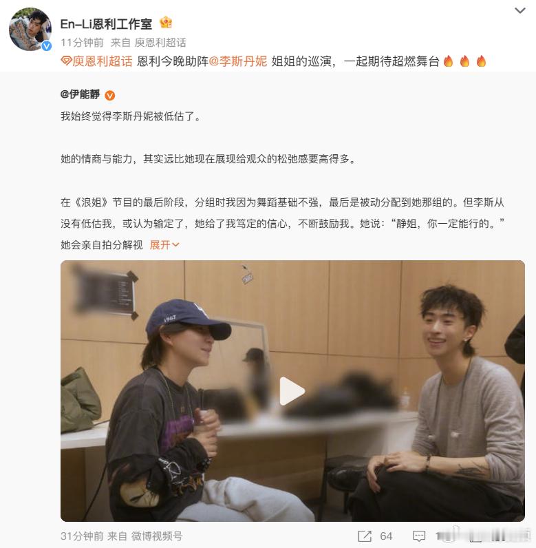 伊能静 把恩利交给李斯丹妮非常放心谁的期待值拉满!恩利首登演唱会嘉宾舞台就合作李斯丹妮,伊能静直言无比放心,把恩利交给李斯丹妮非常放心,坐等舞台点燃全场!