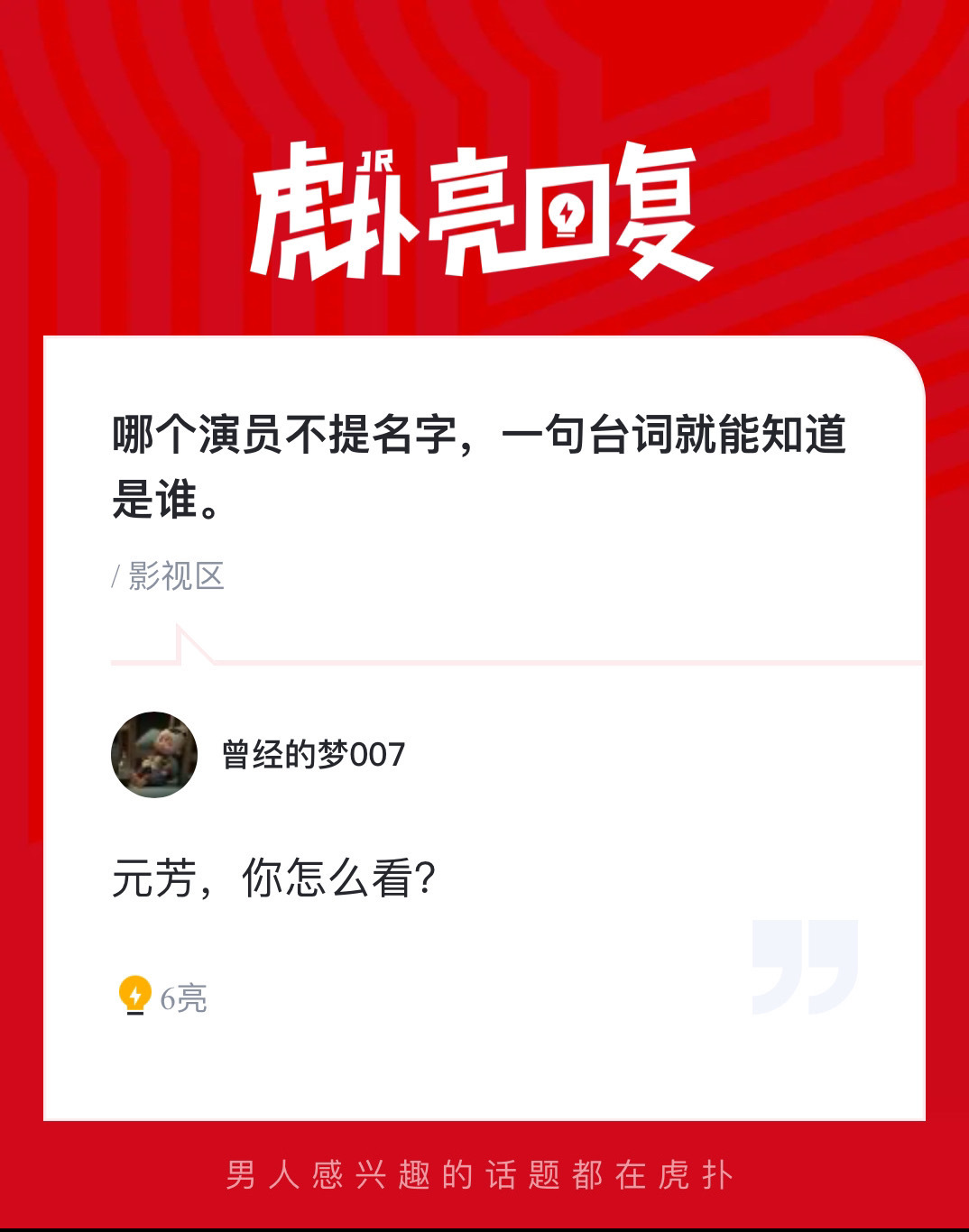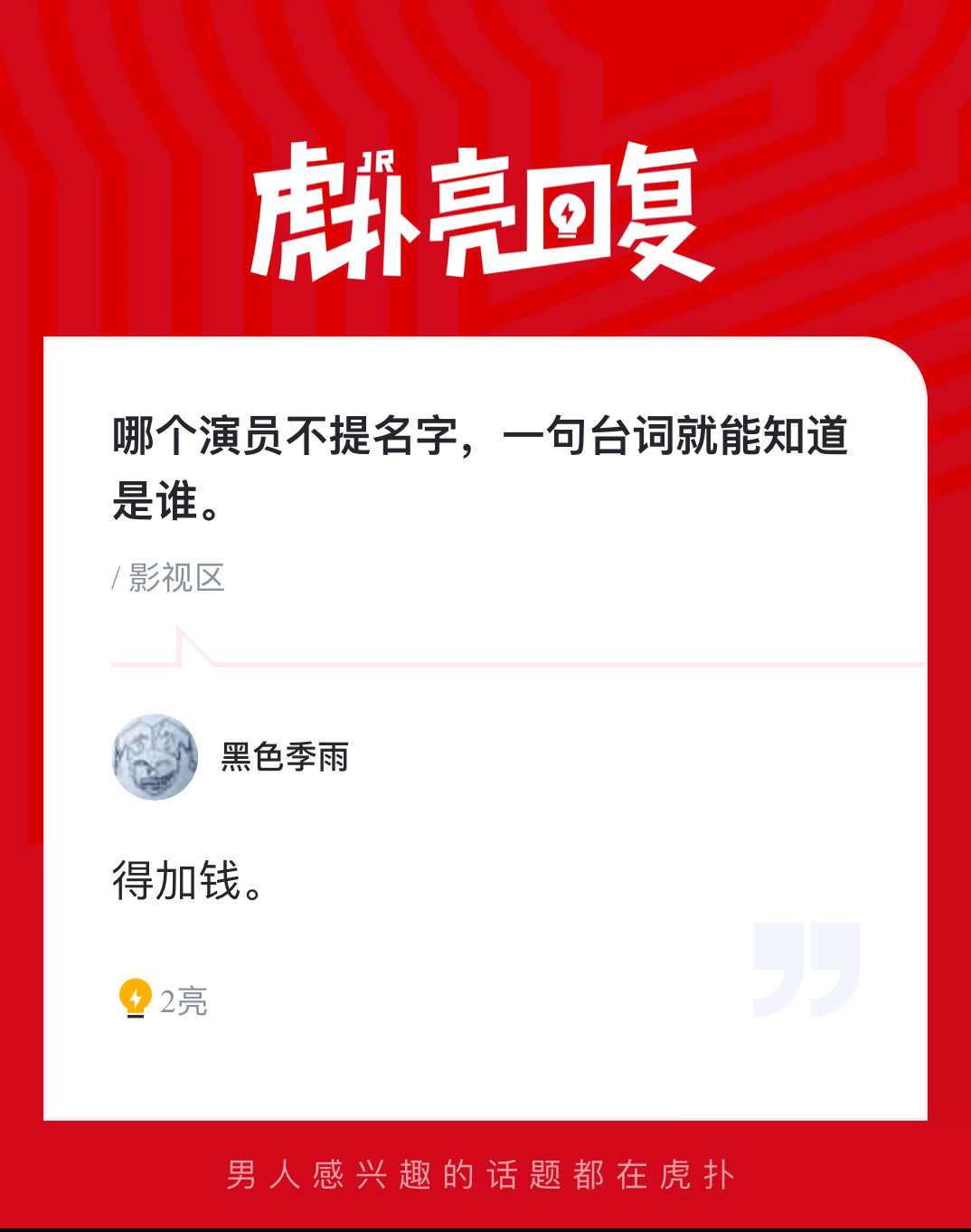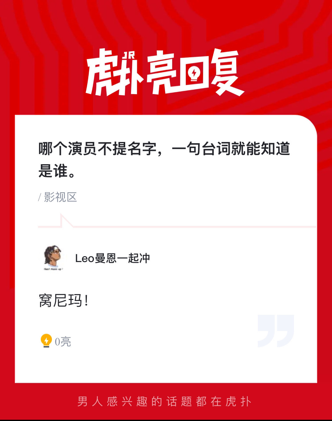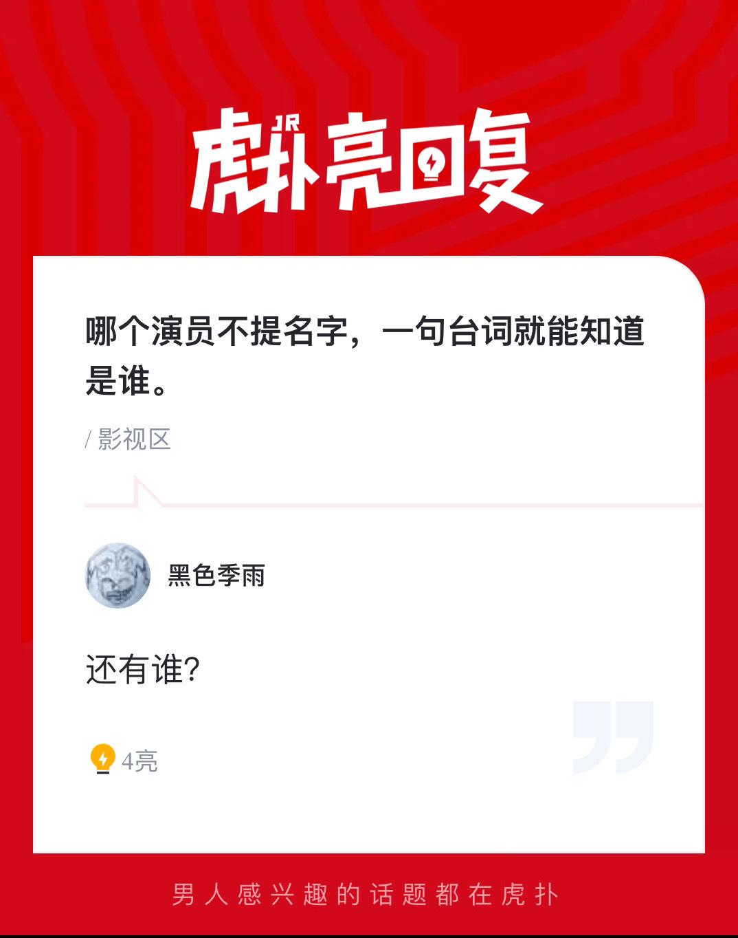 哪个演员不提名字,一句台词就能知道是谁?帖子:哪个演员不提名字,一句台词就能知道是谁上虎扑关注影视区话题