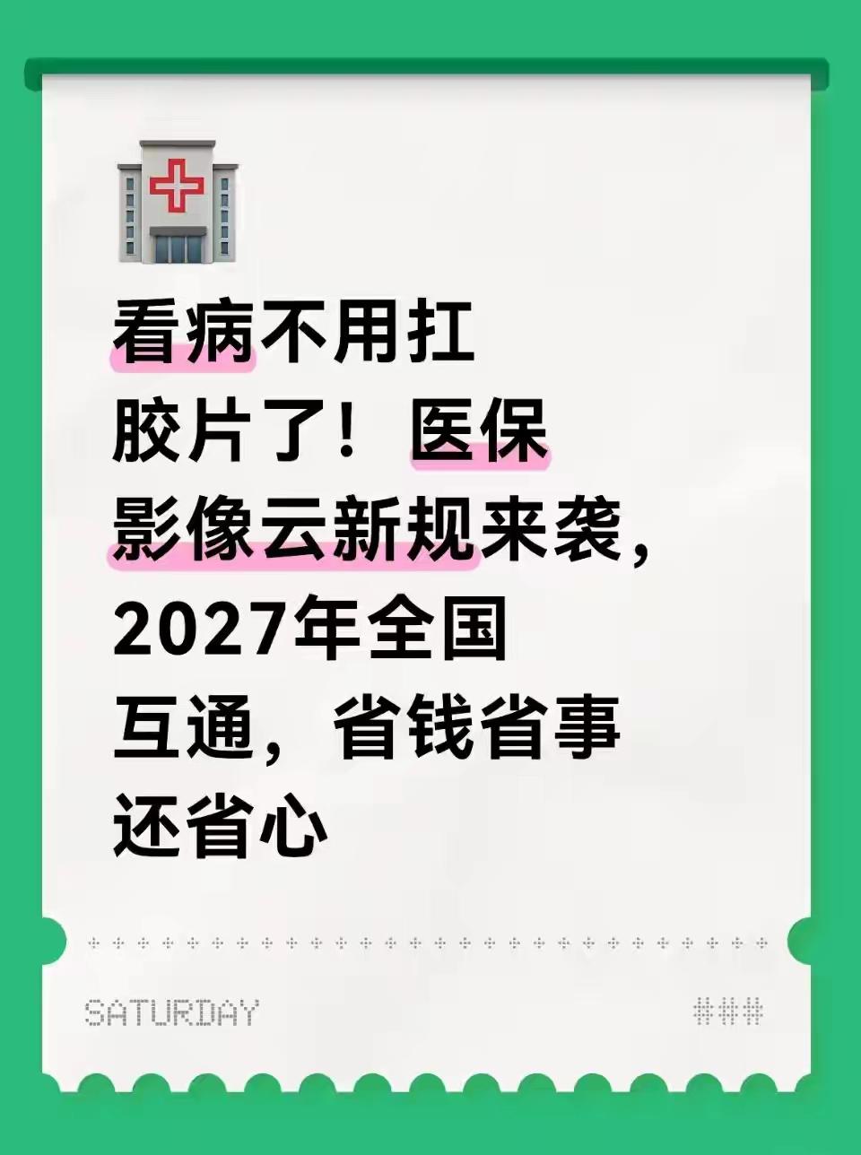 看病不用扛胶片了, 医保影像云新规:2027年全国互通、 省钱、省事还省心 看病不用扛胶片了,未来的医疗体验将更加智能便捷。随着“医保影像云新规”的正式实施,2027年前,全国范围内的医疗影像数据将实现互通互联,这意味着什么?意味着我们再也不用为了几张X光片、CT片跑来跑去,也不用担心影像资料丢失、重复检查的尴尬。 曾几何时,挂个号、拿着厚厚的胶片到处奔波,既耗时又费力,还带来不少不便。更别说那些繁琐的转诊流程,影像资料的转递、复制,成为患者和医生之间的“硬骨头”。而现在,随着云技术的崛起,所有影像资料都可以存储在云端,患者的影像资料随时随地都能被调取,医生的诊断也更加高效精准。 这个新规的背后,是对我们生活的深刻改善。它不仅仅是技术的升级,更是医疗服务模式的变革。想象一下:在家里预约好医生,上传自己的影像资料,医生可以第一时间获取所有影像信息,制定最合适的治疗方案。你不用再为影像资料的转递奔波,不用担心资料丢失,更不用担心重复检查带来的额外花费。 更令人振奋的是,这一切都在为我们省钱、省事、省心。医疗费用的降低,意味着家庭的经济压力减轻;流程的简化,让就医变得轻松愉快。更重要的是,这种技术的普及,极大提升了医疗的公平性,让偏远地区的患者也能享受到优质的医疗资源。 当然,任何变革都伴随着挑战。隐私安全、数据保护成为关注焦点。我们相信,随着技术的不断成熟和政策的严格落实,这些问题都能迎刃而解。未来的医疗,不仅仅是技术的革新,更是以人为本、关怀每一位患者的温暖体现。 这不仅仅是一个“新规”,更是一场关乎我们每个人未来健康的革命。它让我们看到:科技的力量可以让生活变得更美好。只要我们敢于拥抱变化,未来的医疗世界会变得更加透明、高效、温暖。你准备好迎接这个改变了吗?让我们一起期待,一个没有胶片、没有繁琐、只有便捷与温情的医疗新时代正向我们走来!医疗影像云平台 医疗数据共享
