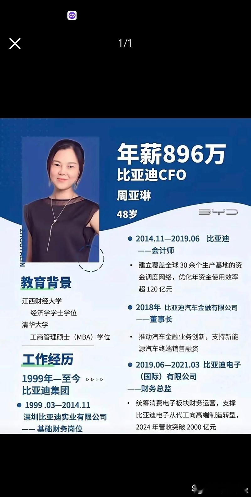 比亚迪副总裁兼CFO周亚琳竟然是我们抚州的,具体好像离我家还不远,我竟然今天才知道。比亚迪在抚州不仅规划了50万产能的工厂,还有一家五网销售中心,我想周总对家乡建设做出了很大努力比亚迪建厂后对当地的GDP和就业贡献真的不小,抚州成为江西增长最快的地级市了。多少地区希望引进比亚迪这样的龙头企业啊,还有不少人天天“恒大”的黑,真是小可爱