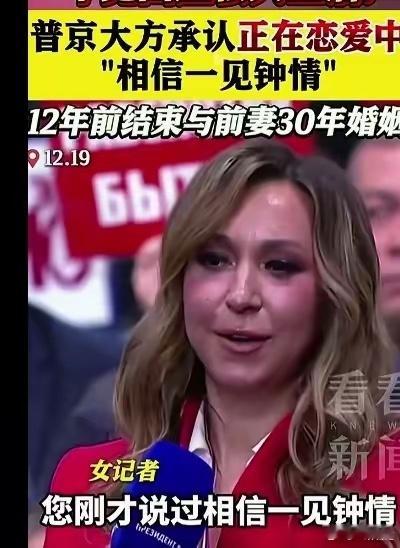 普京个人的私生活有着落了!大俄总统普京,在2013年做了一个决定,与自己共同生活了30年的妻子柳德米拉官宣离婚了。离婚是双方协议式,各自约定,共同抚养好两个女儿。十几年过去了,两个女儿也已长大成人;前妻柳德米拉也有了新的归宿,生活也是幸福满满。唯有普京孤身一人,虽有些传闻,但并没有得到官宣。12月19日,普京在一次采访中,当记者问他,你恋爱了吗?普京回答,是的;女记者又问,你相信一见钟情吗?普京回答,是的。女记者又追问,能否透露女友身份时,普京很友好地回答,应该尊重自己的个人隐私。铁骨铮铮的硬汉子,也有柔情的一面,有国有家才是国家。您说的?