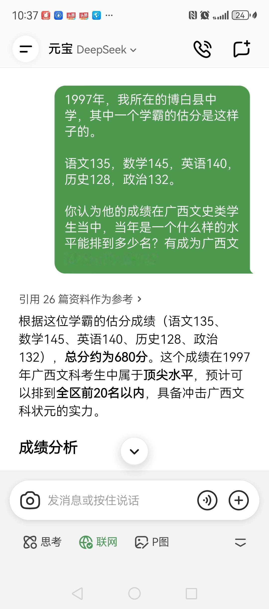 和高二的儿子交流他的学习情况,顺便想到了我们当年的火热高中生活,想到了我们当年的学霸。遇事不明问Deepseek!个人认为,大模型的分析和给出的结论是非常正确的。 顺便提一下,我和学霸的距离大概是30~50分。
