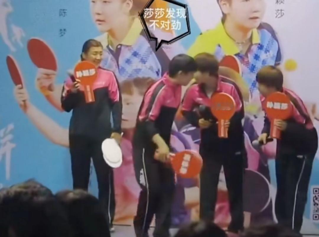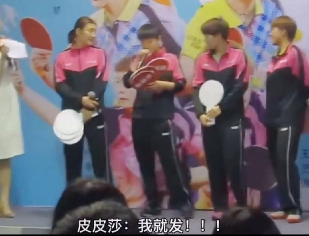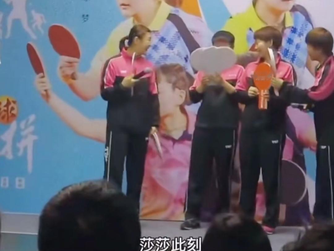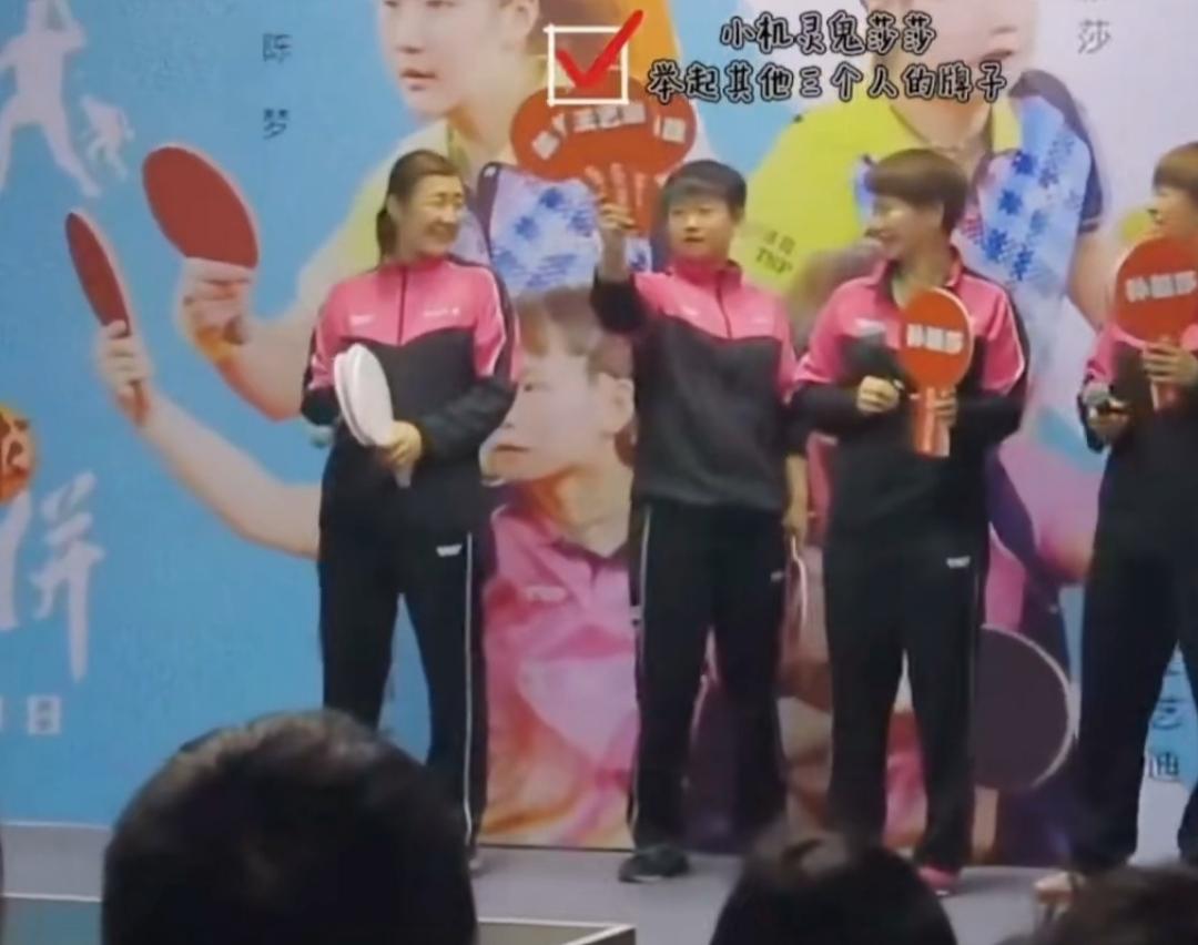 猜猜猜!大家都一致选择了孙颖莎,看来早年的莎莎太喜欢分享了。 主持人问大家:“如果让你们朋友圈屏蔽掉一个人,你们想选谁?” 陈梦、王艺迪、佳佳都选了孙颖莎,台下大家都笑了,莎莎感觉不对劲赶紧转头看大家都选了自己。 小机灵鬼莎莎赶紧倒腾手中的姓名牌,依次摆好,把他们三人的名字都亮出来。 太好笑了,一边亮牌的莎莎一边大声说:“我就要发朋友圈。” 因为莎莎,现场太欢乐了!