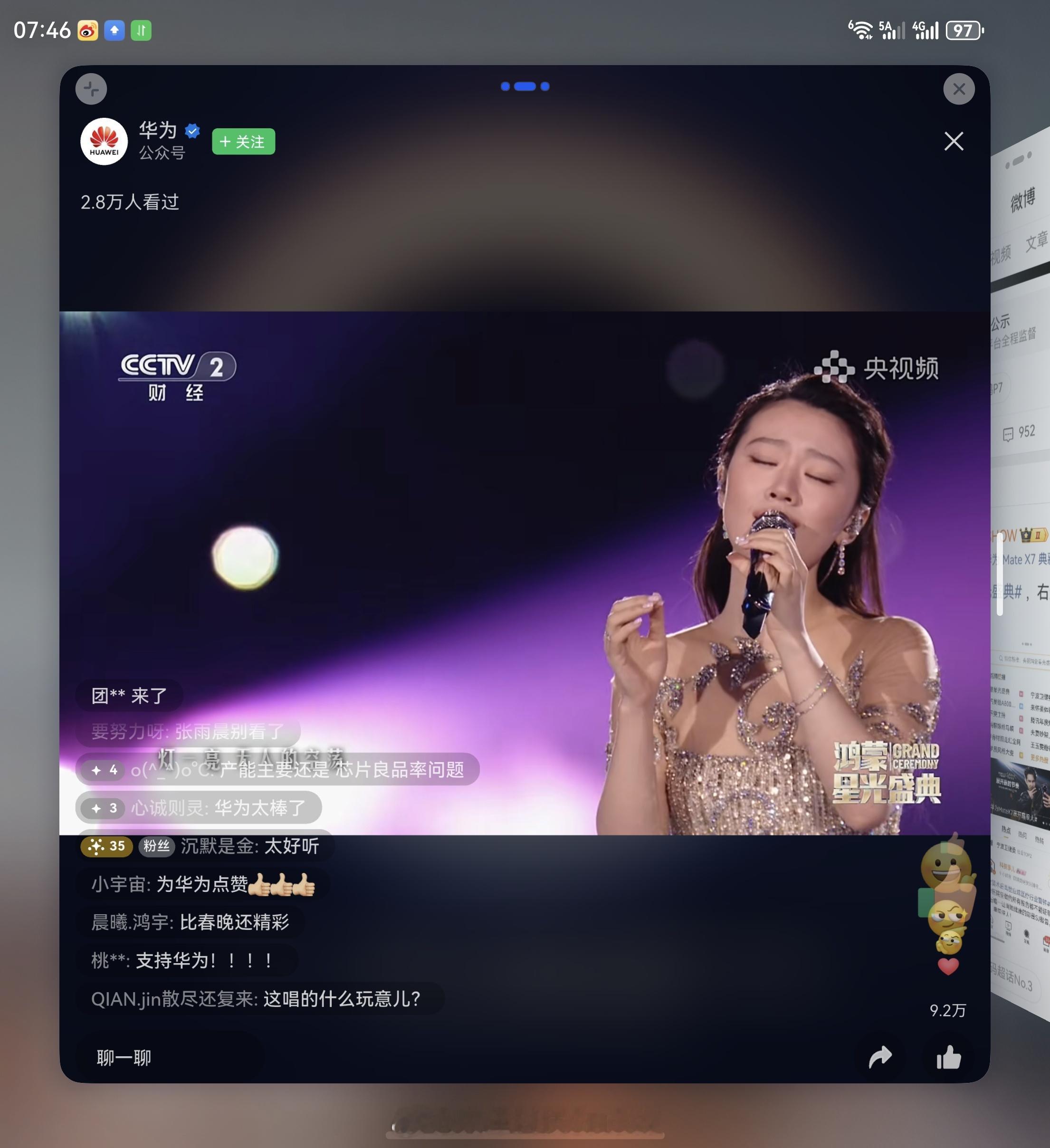 左边看鸿蒙星光盛典 ,右边发微博,折叠屏就是这么香☺