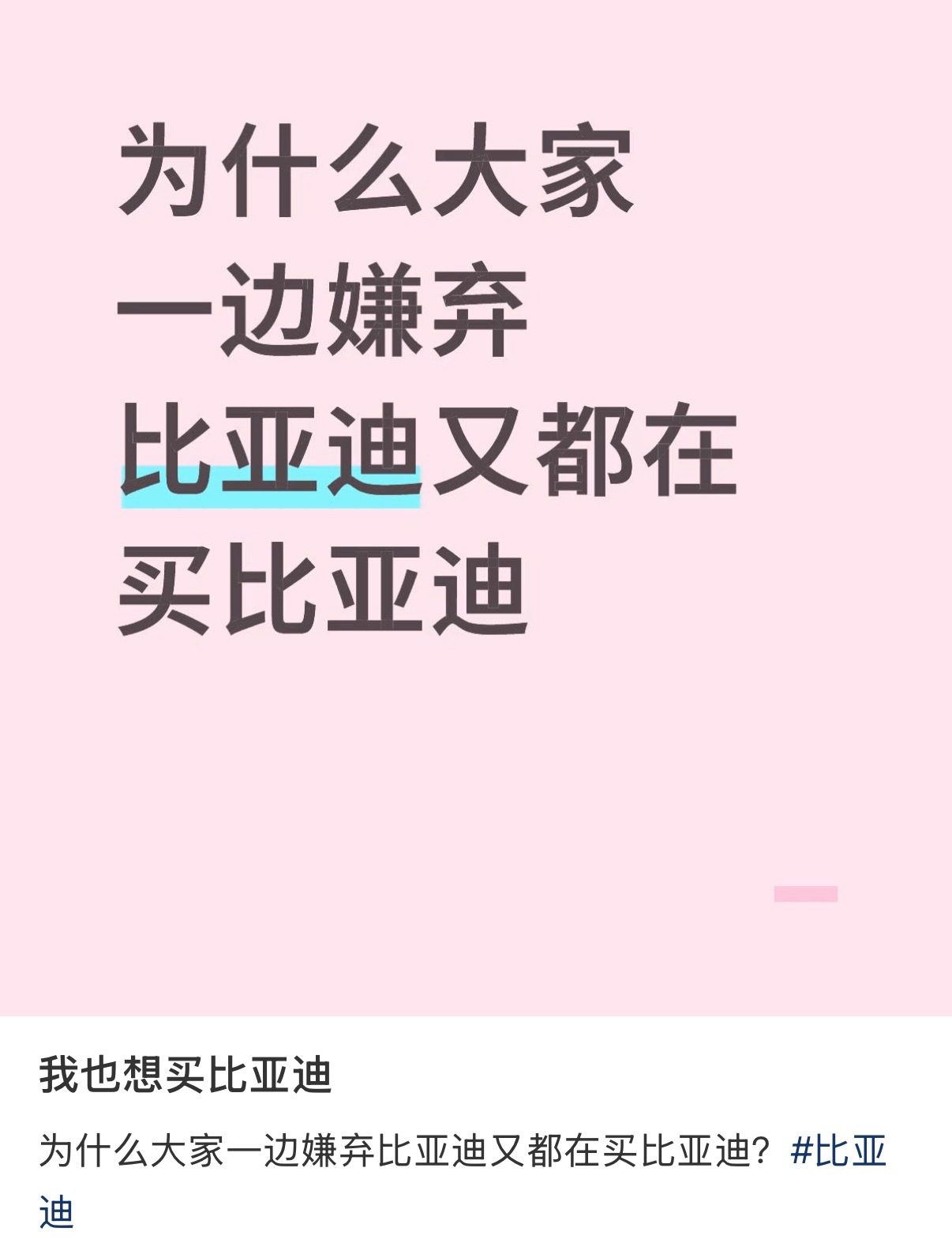 是这样吗?我觉得比亚迪挺好的啊,性价比又高,没有什么好嫌弃的了吧