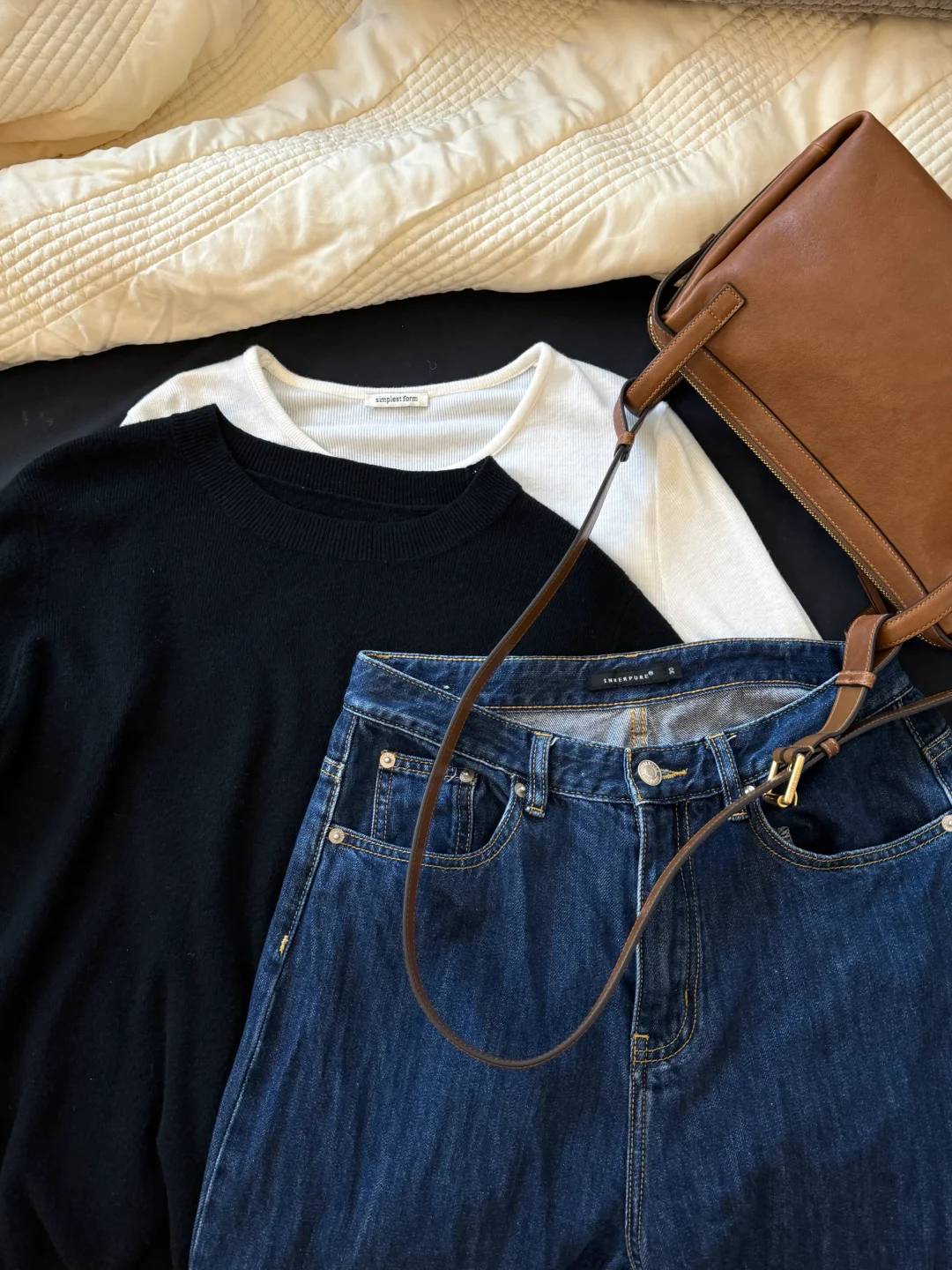 今年冬天不是太冷,直筒牛仔裤穿的频率很高