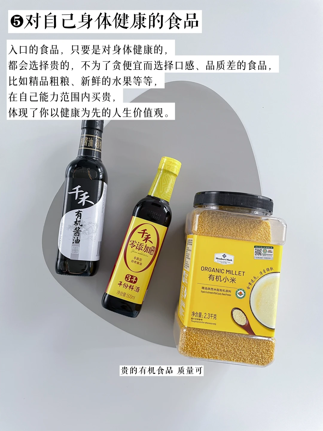 入口的食品,只要是对身体健康的,都会选择贵的,不为了贪便宜而选择口感、品质差的食品,比如精品粗粮、新鲜的水果等等,在自己能力范围内买贵,体现了你以健康为先的人生价值观。