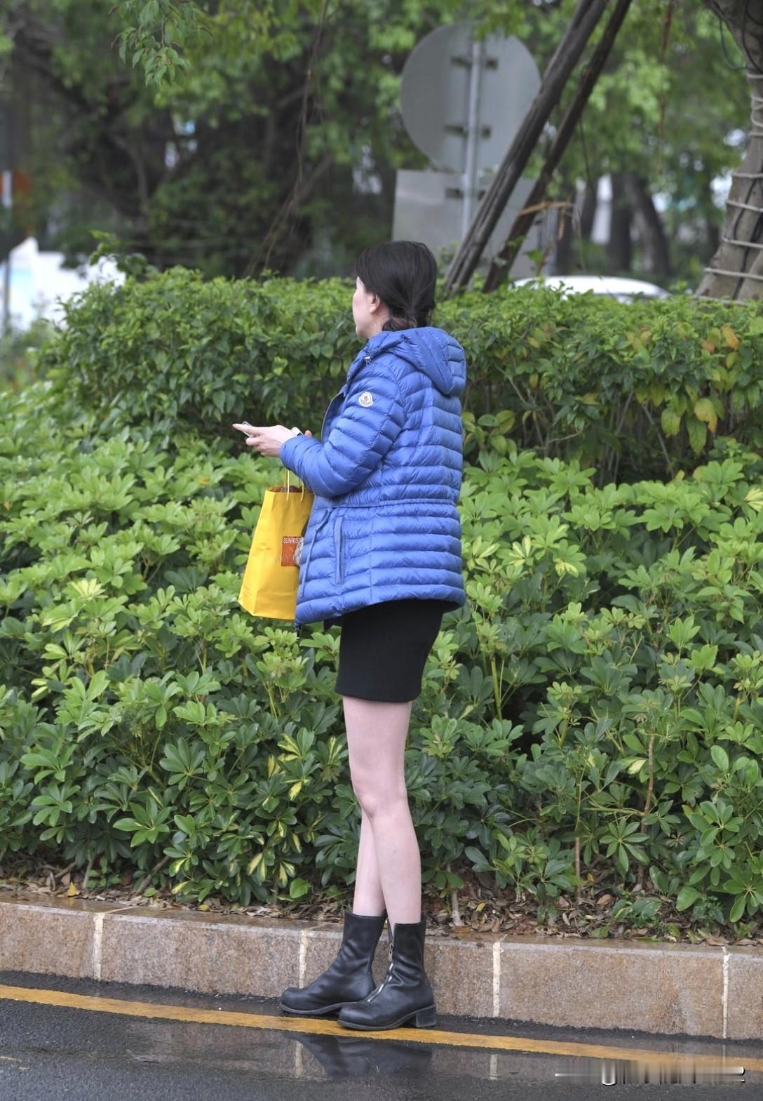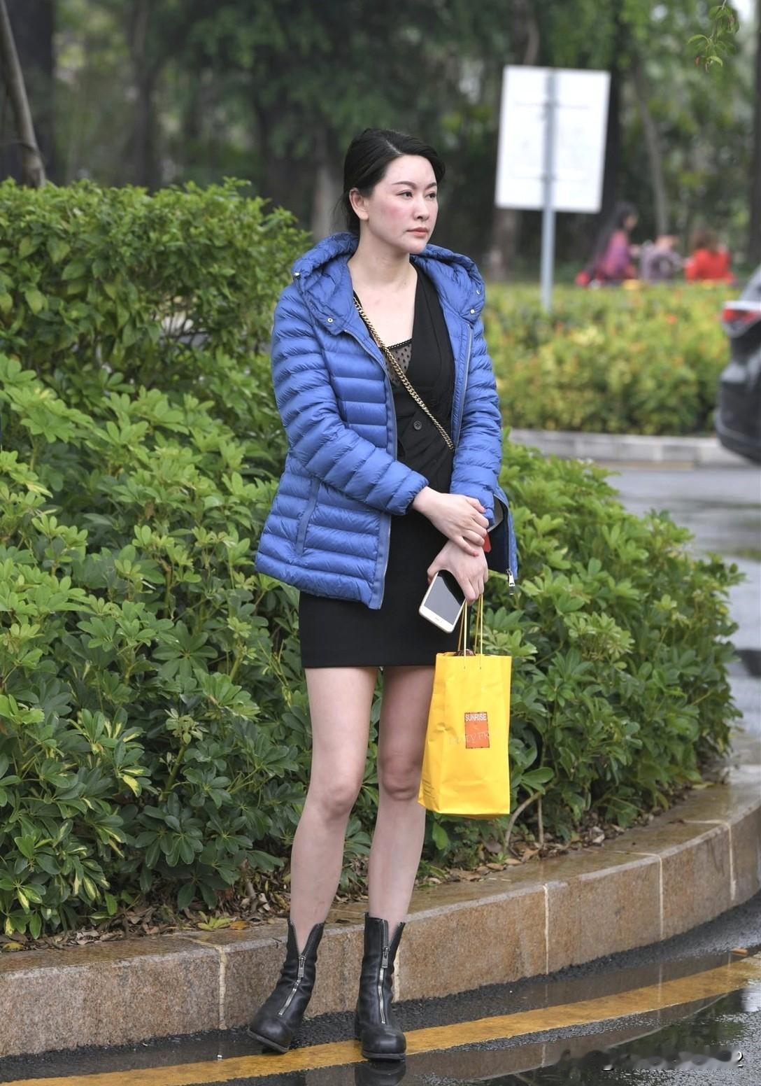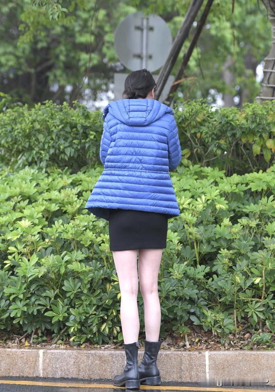秋日穿搭指南:蓝色羽绒服+黑色短裙,时尚又保暖