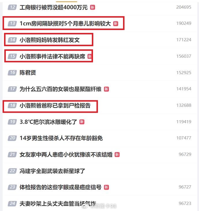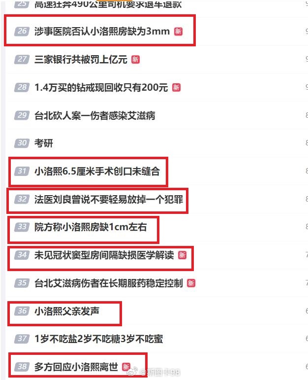 涉事医院回应小洛熙尸检报告 50条热搜话题,占了21个比九三阅兵还热 ,这在近两